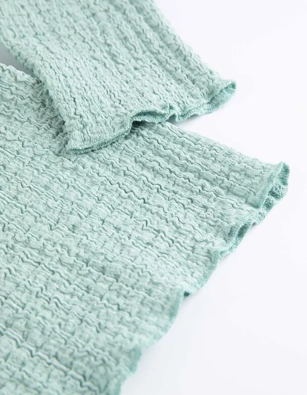 TurkooisEffenHalsLange MouwenMateriaalmixZonder SluitingGeschulpte Zoom