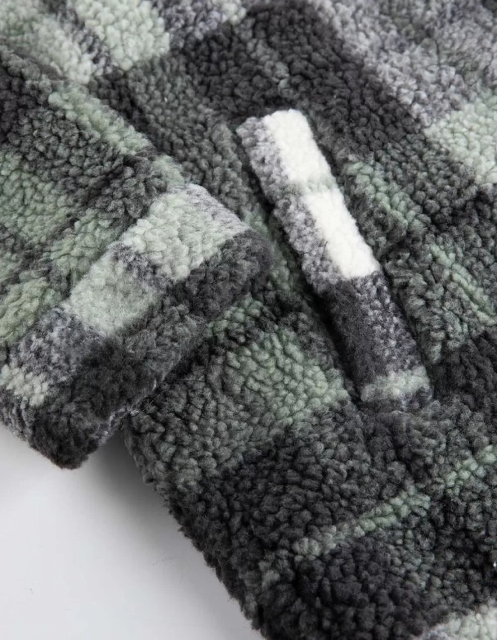 WitRuitmotiefOverhemd KraagLange MouwenTeddyKnoopsluitingOpgestikte Zakken