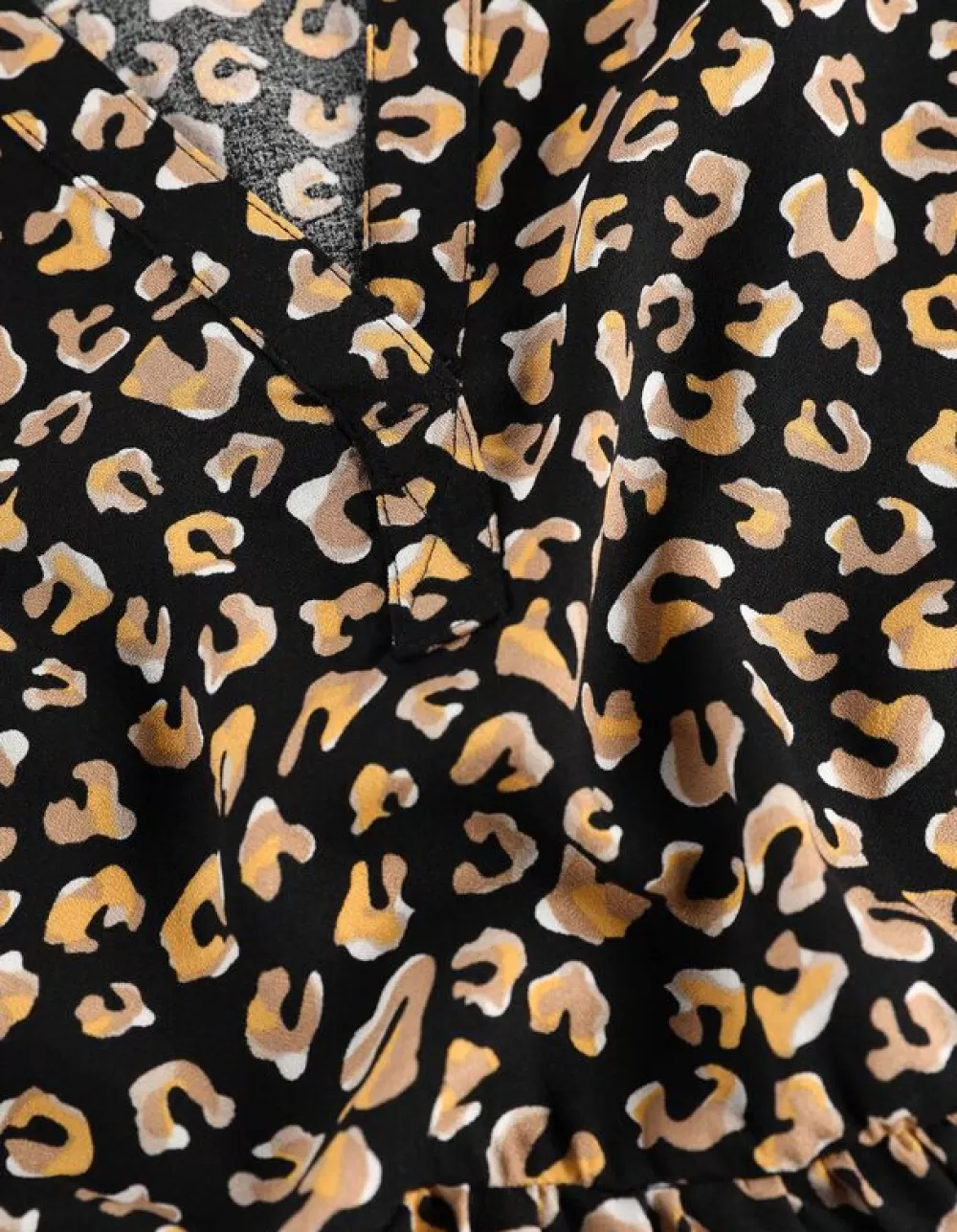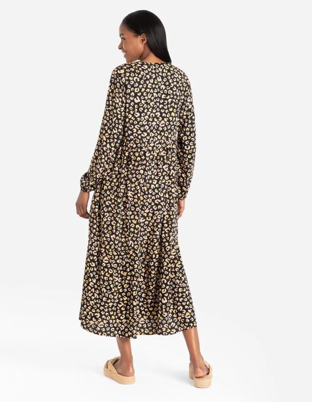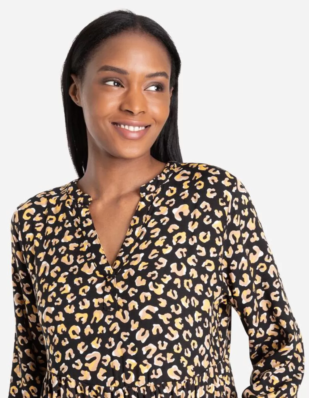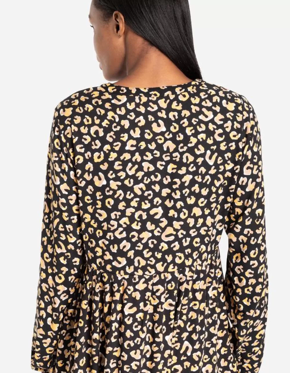 ZwartMotief All-OverRonde Hals Met KnoopjesLange MouwenNormale LengteLenzing™ Ecovero™Elastische Randen