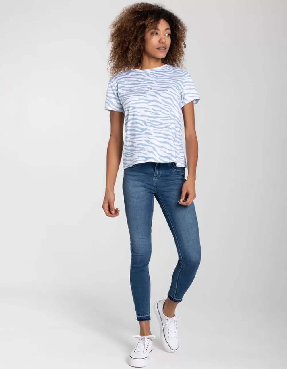 LichtblauwMotief All-OverRonde HalsKorte MouwenKatoen