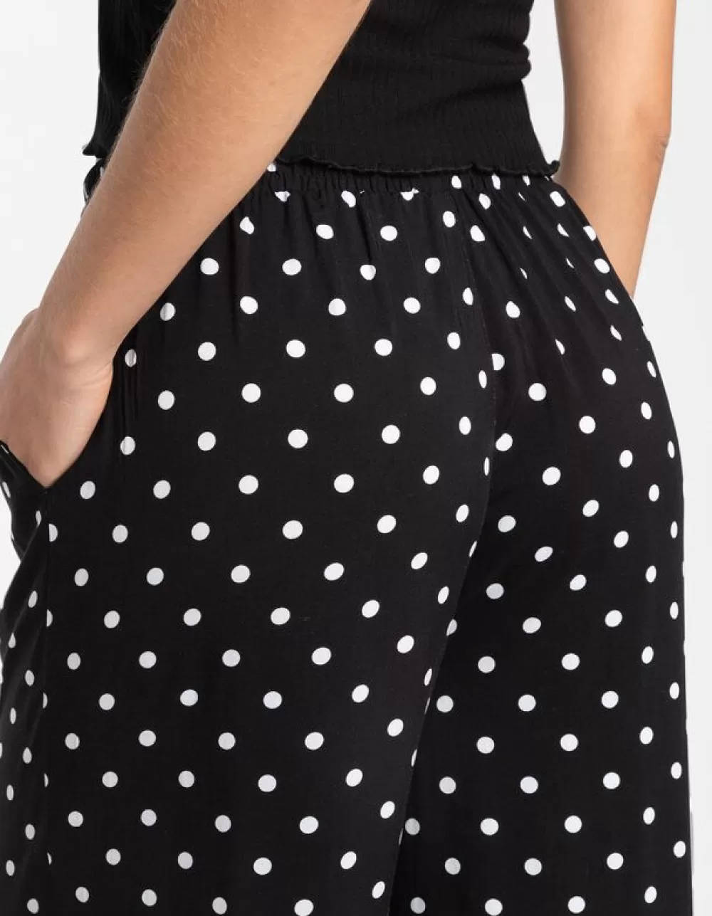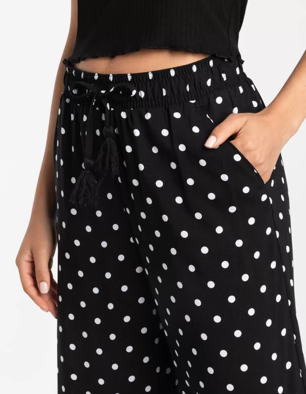 ZwartStippenmotiefHoge TailleEnkellengteViscoseKoordSteekzakkenTunnelkoord Op TaillehoogteElastische Band