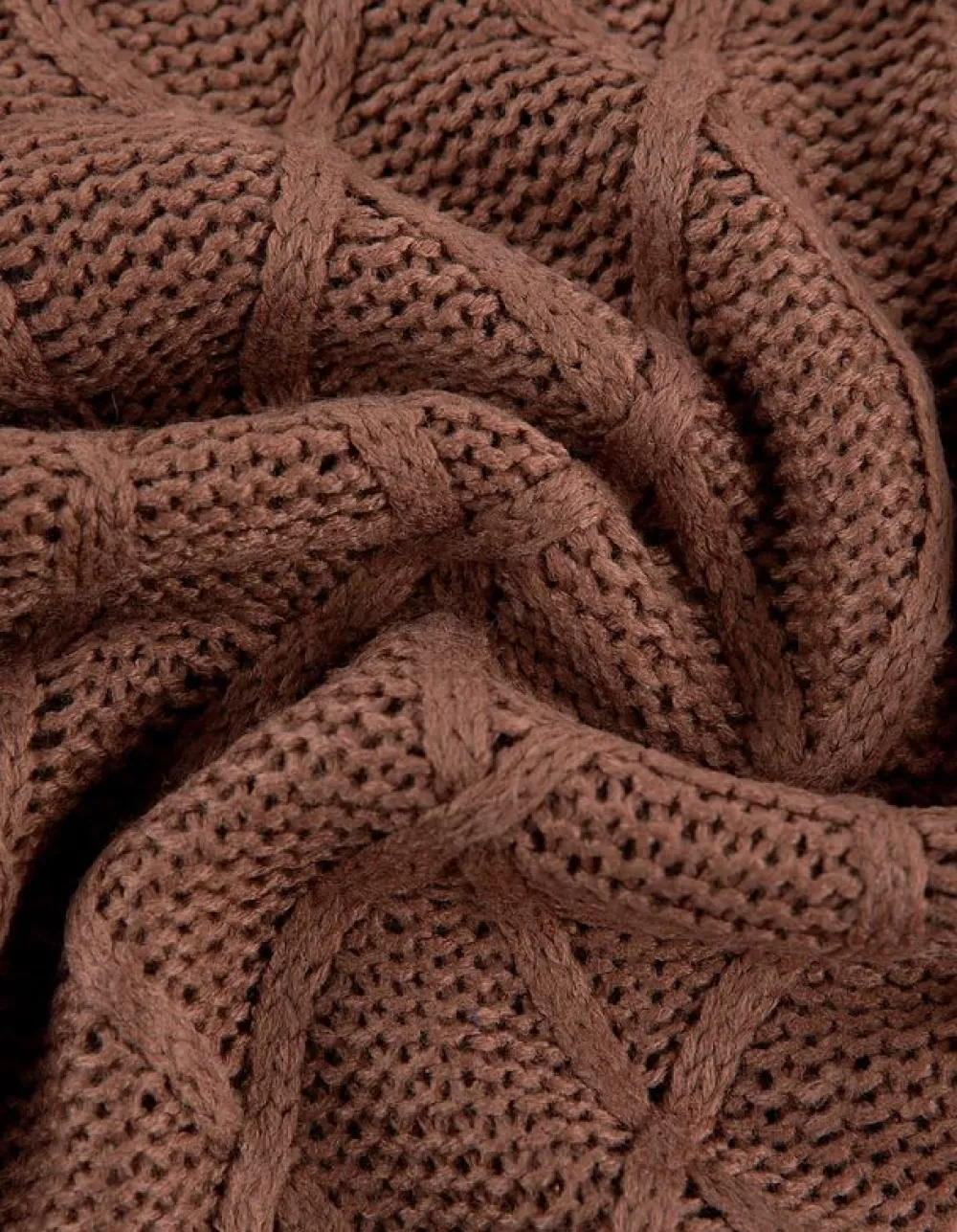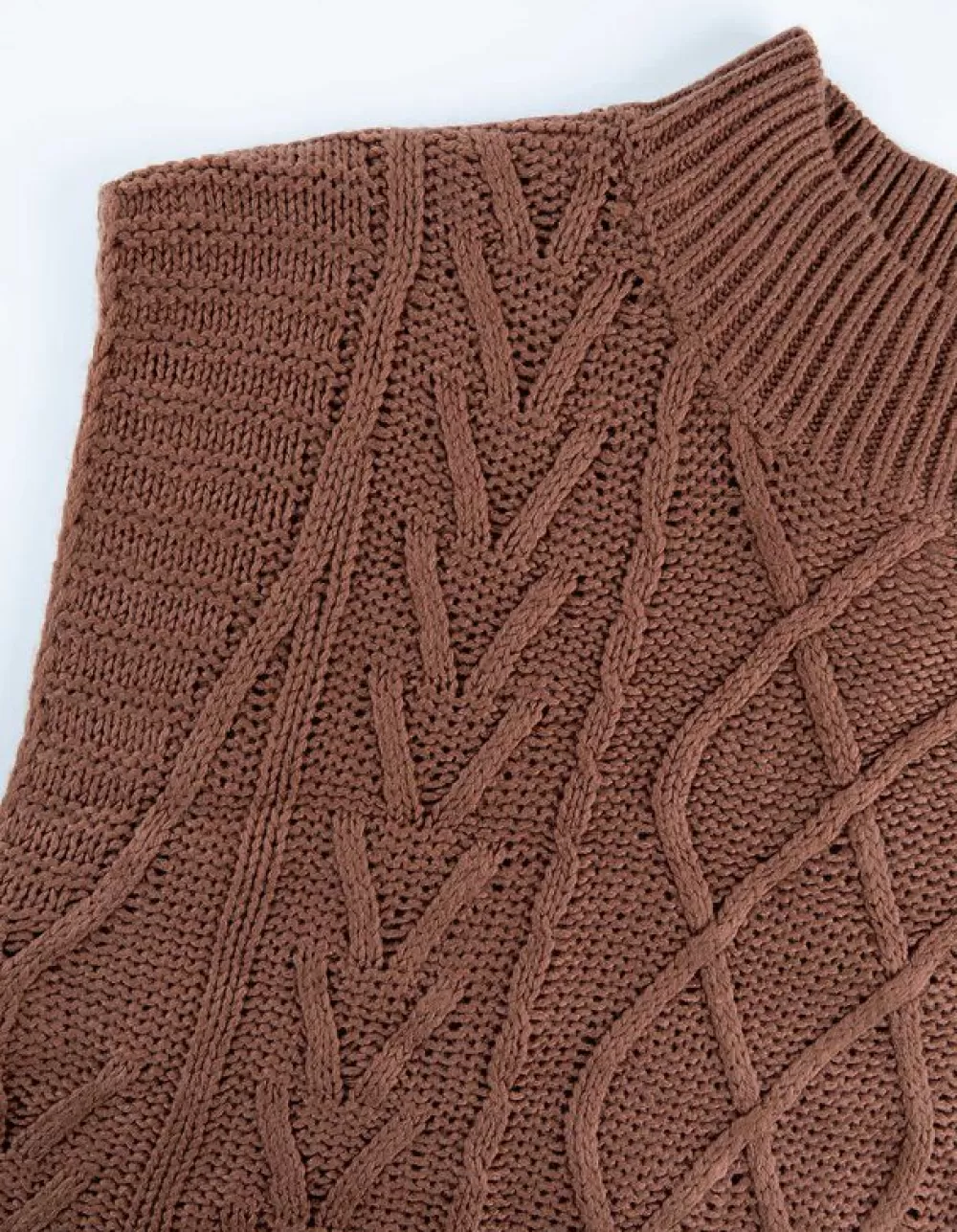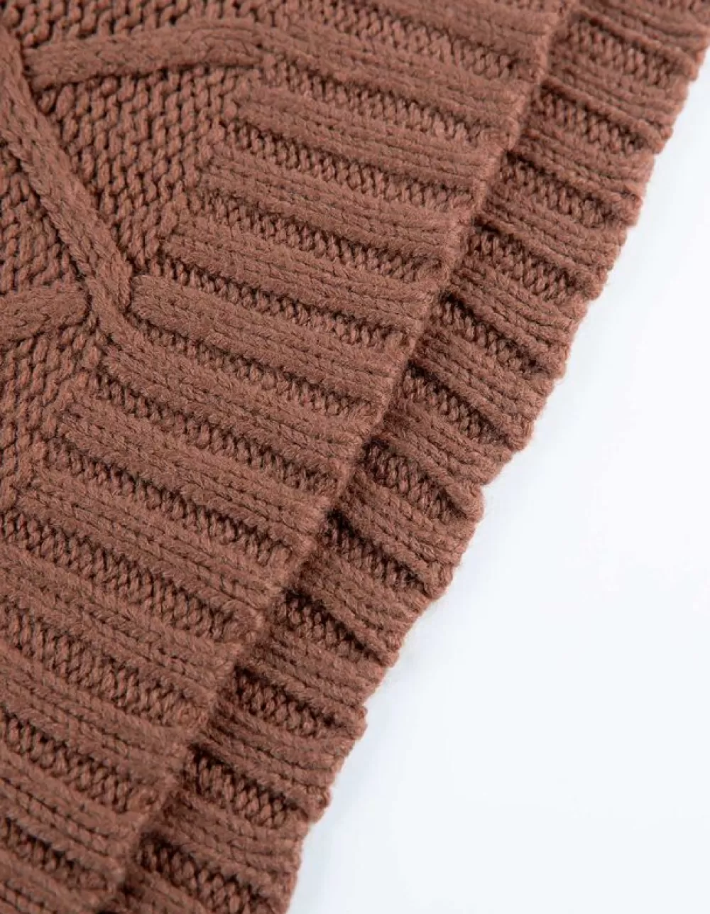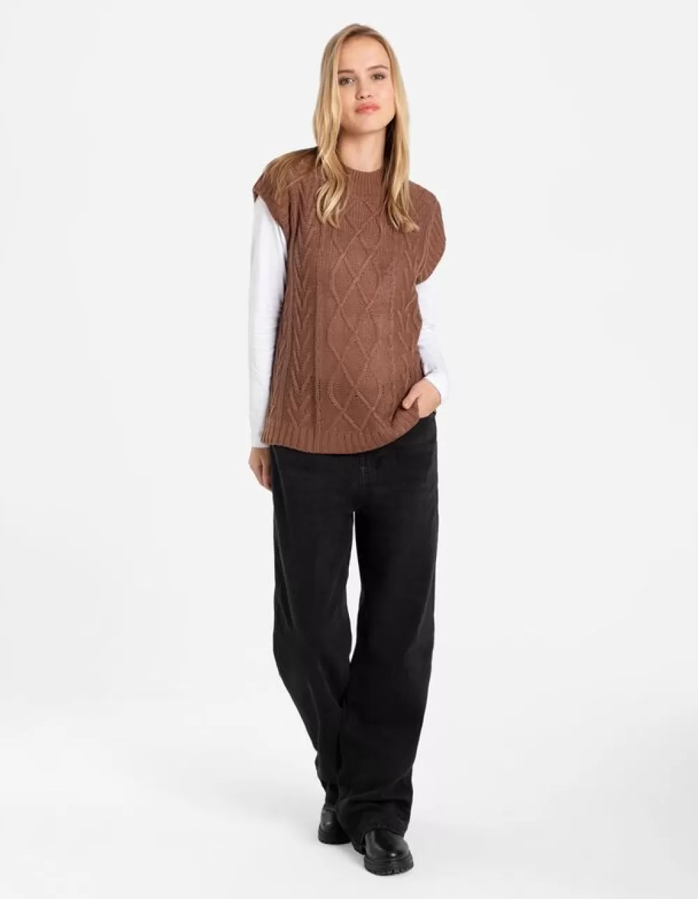 DonkerbruinKabelpatroonColtruiMouwloosWol LookZonder Sluiting