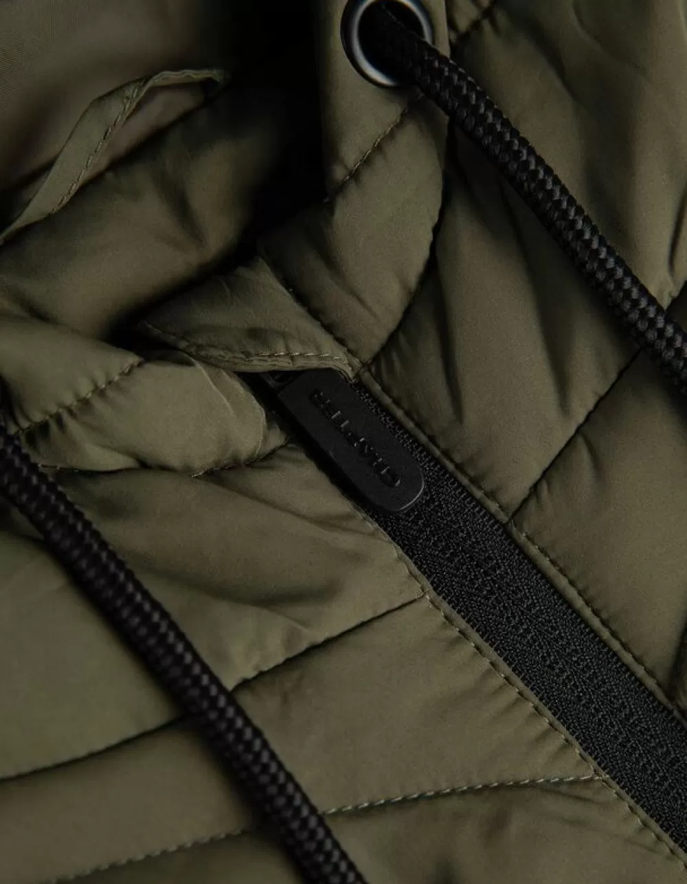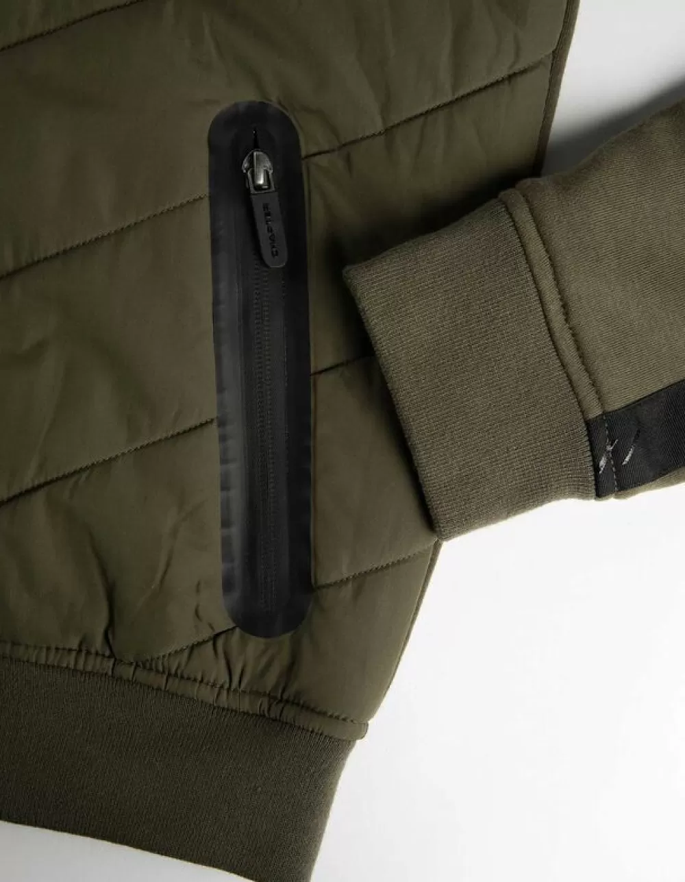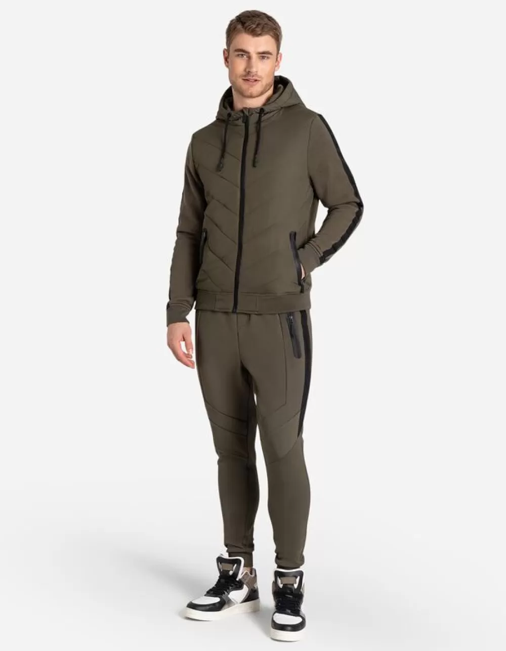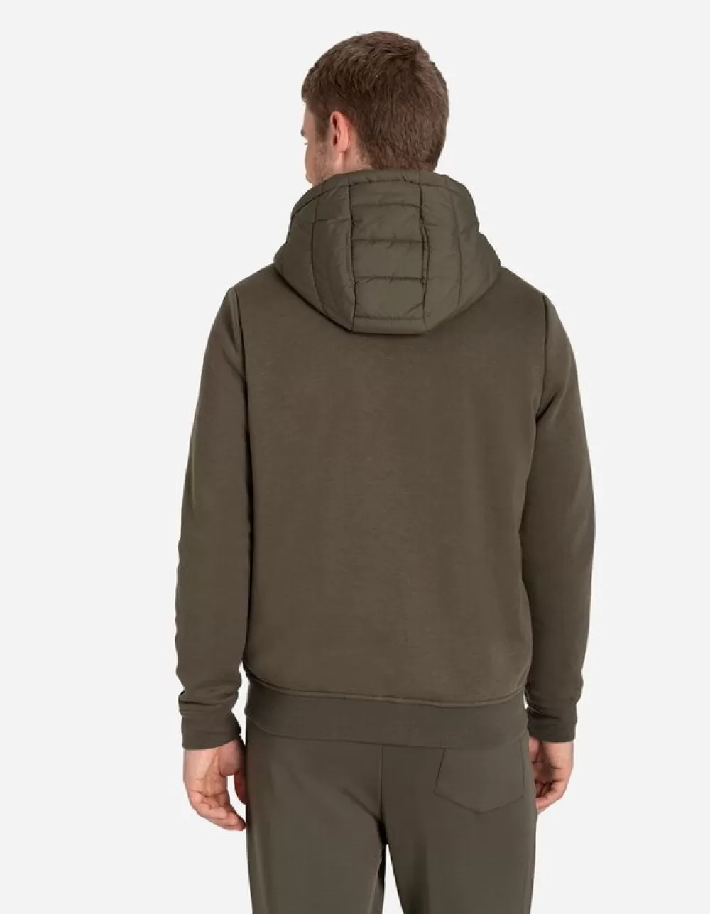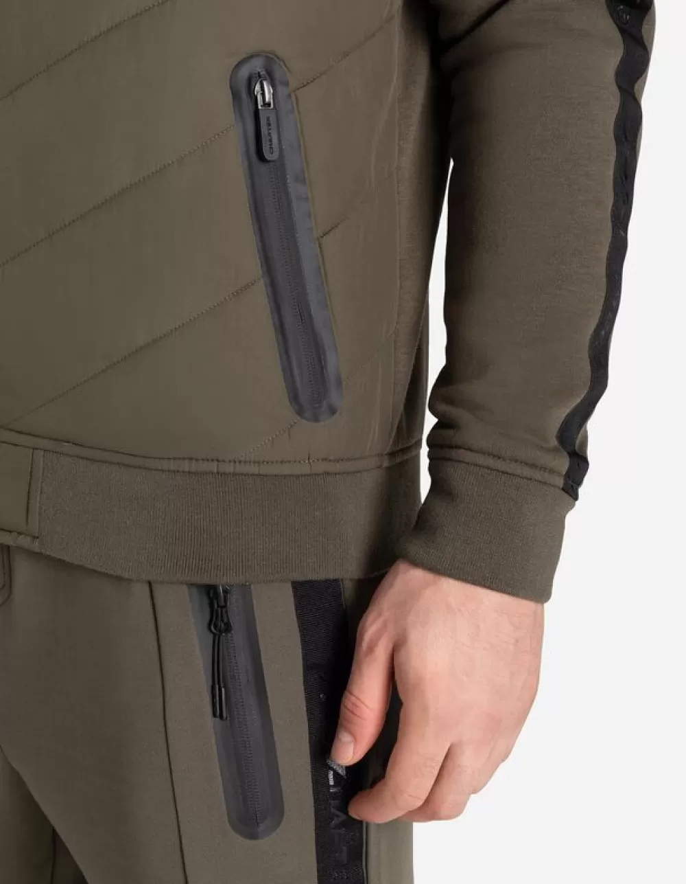 DonkergroenEffenKapuzen-AusschnittLange MouwenMateriaalmixRitssluitingSteekzakkenContraststrepenCapuchon