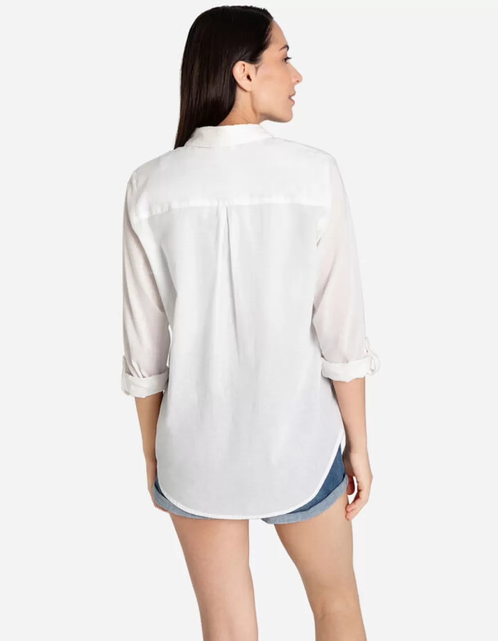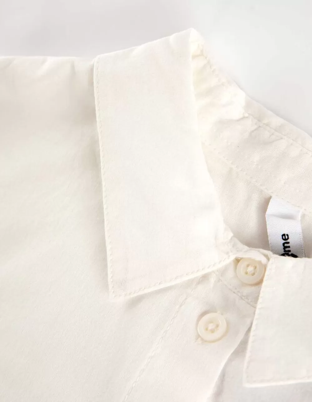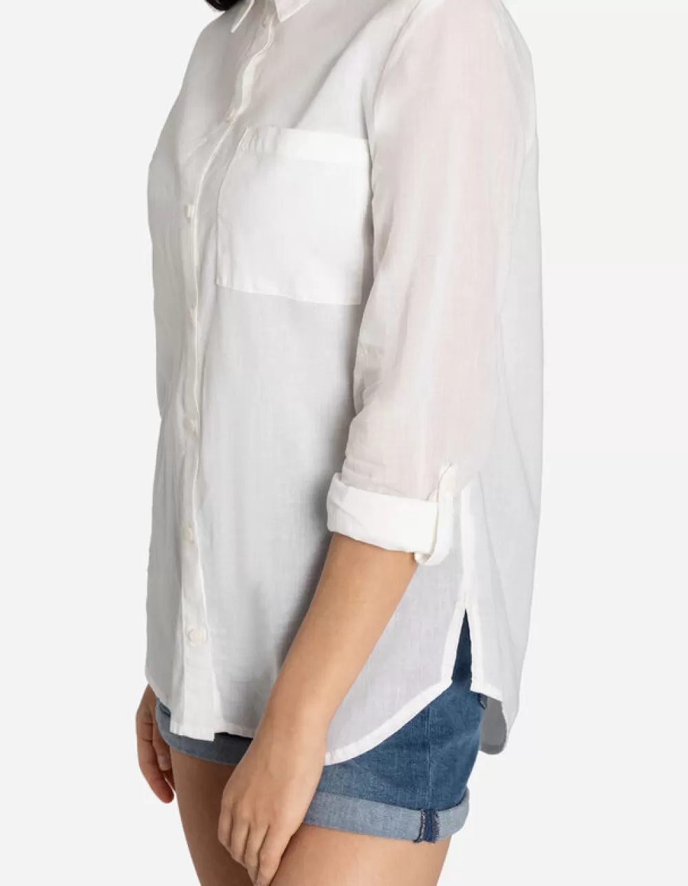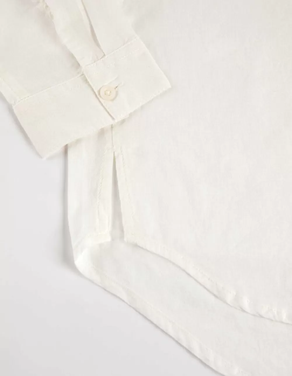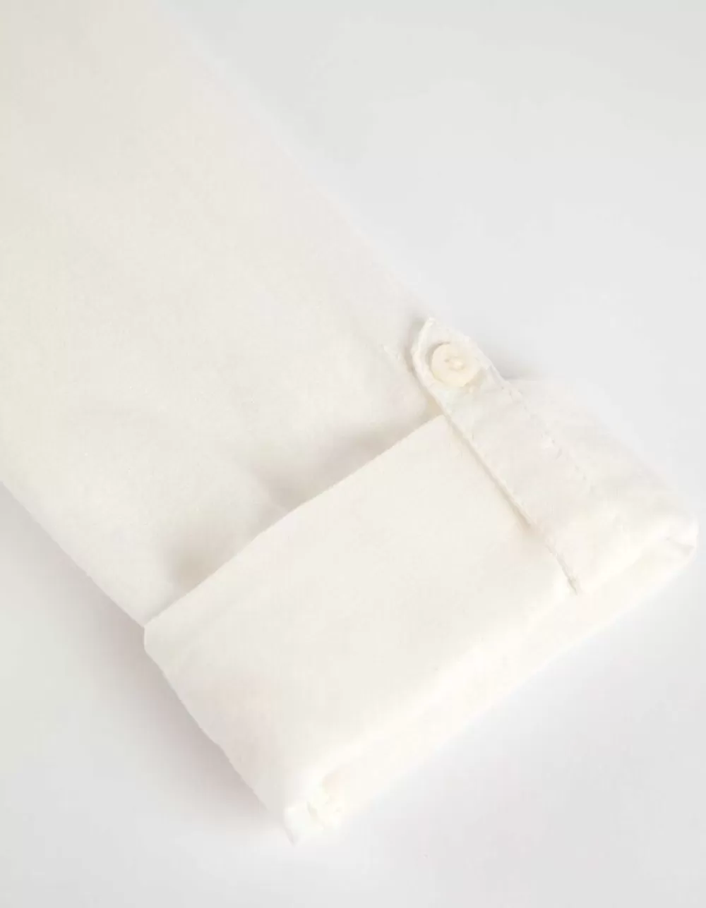 WitEffenRonde HalsLange MouwenKentkraagKatoenKnoopsluitingElastische RandenVerstelbare MouwlengteBorstzak