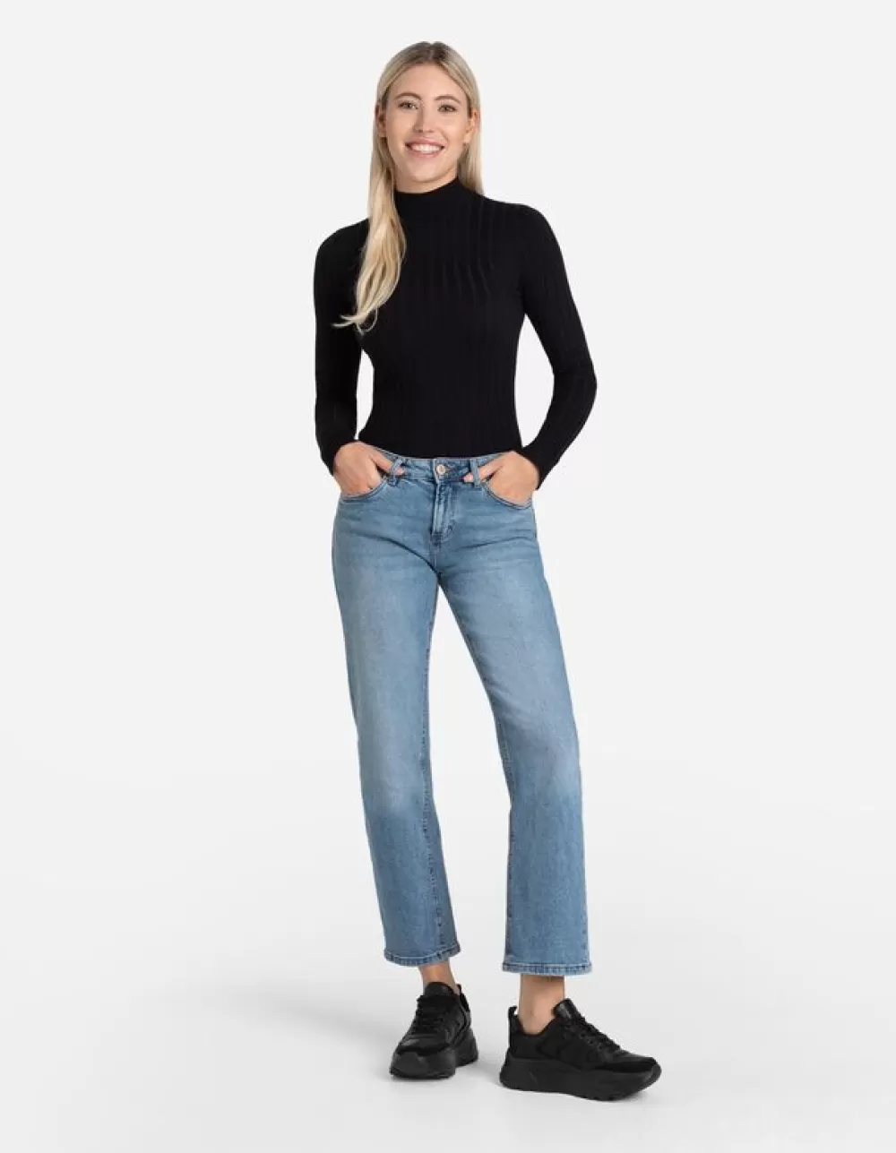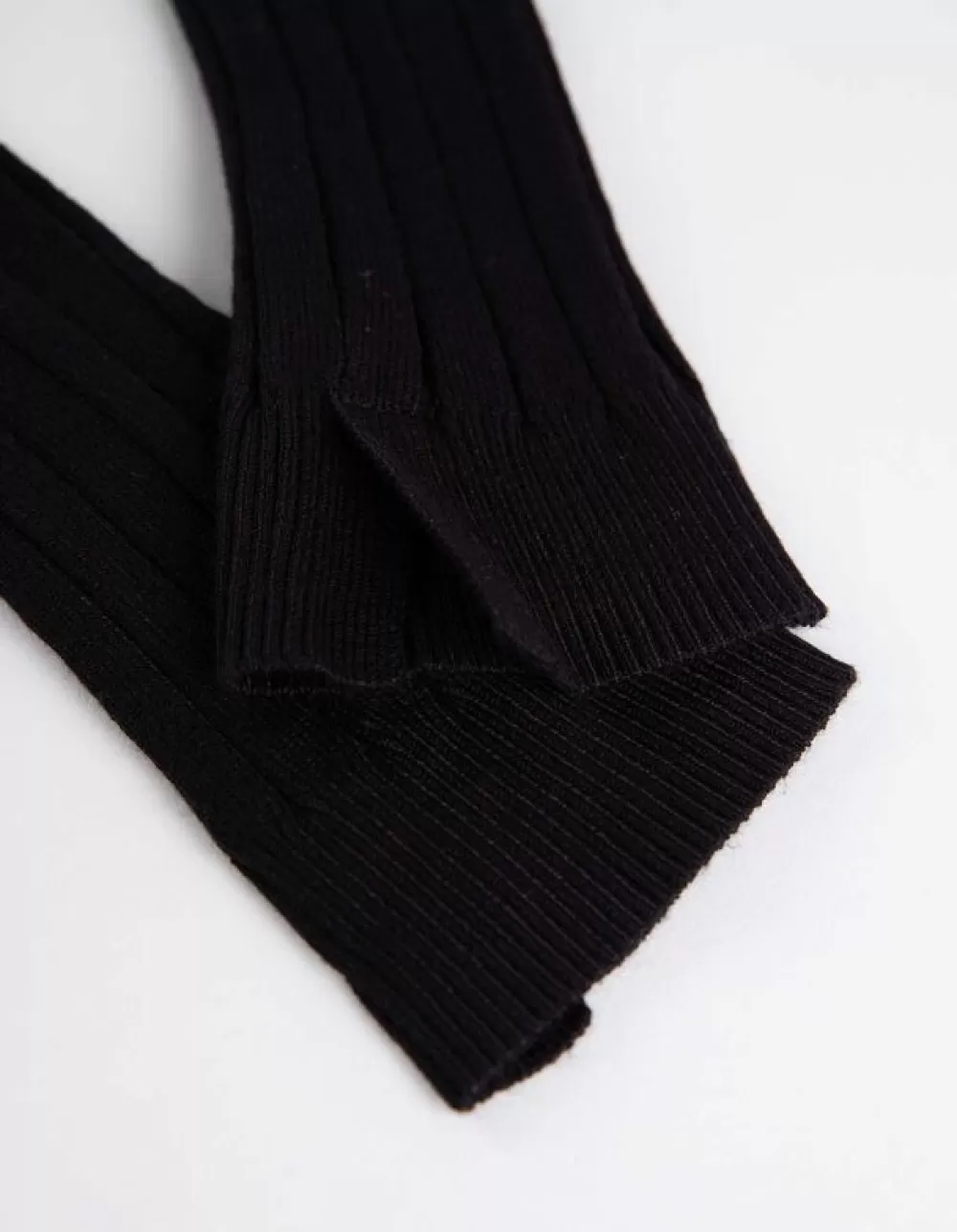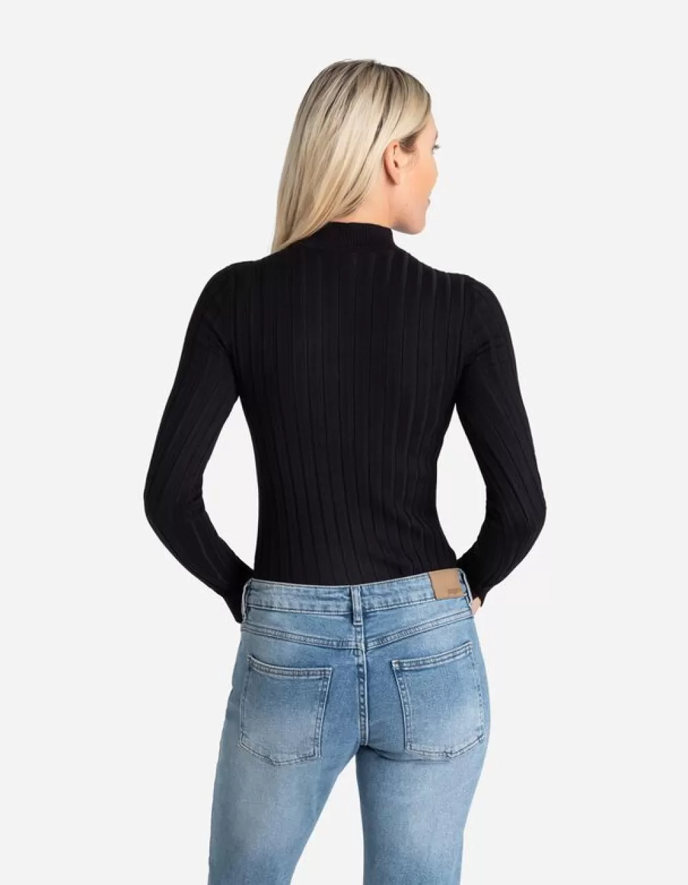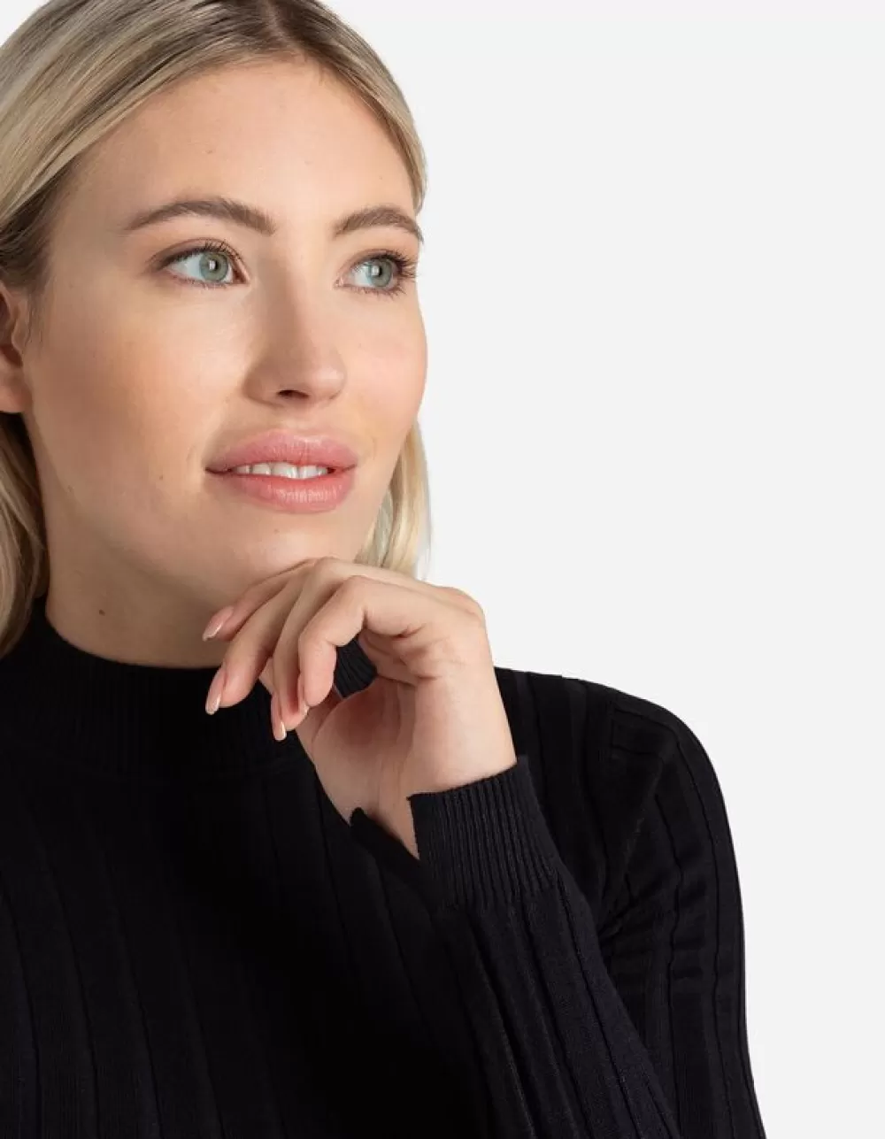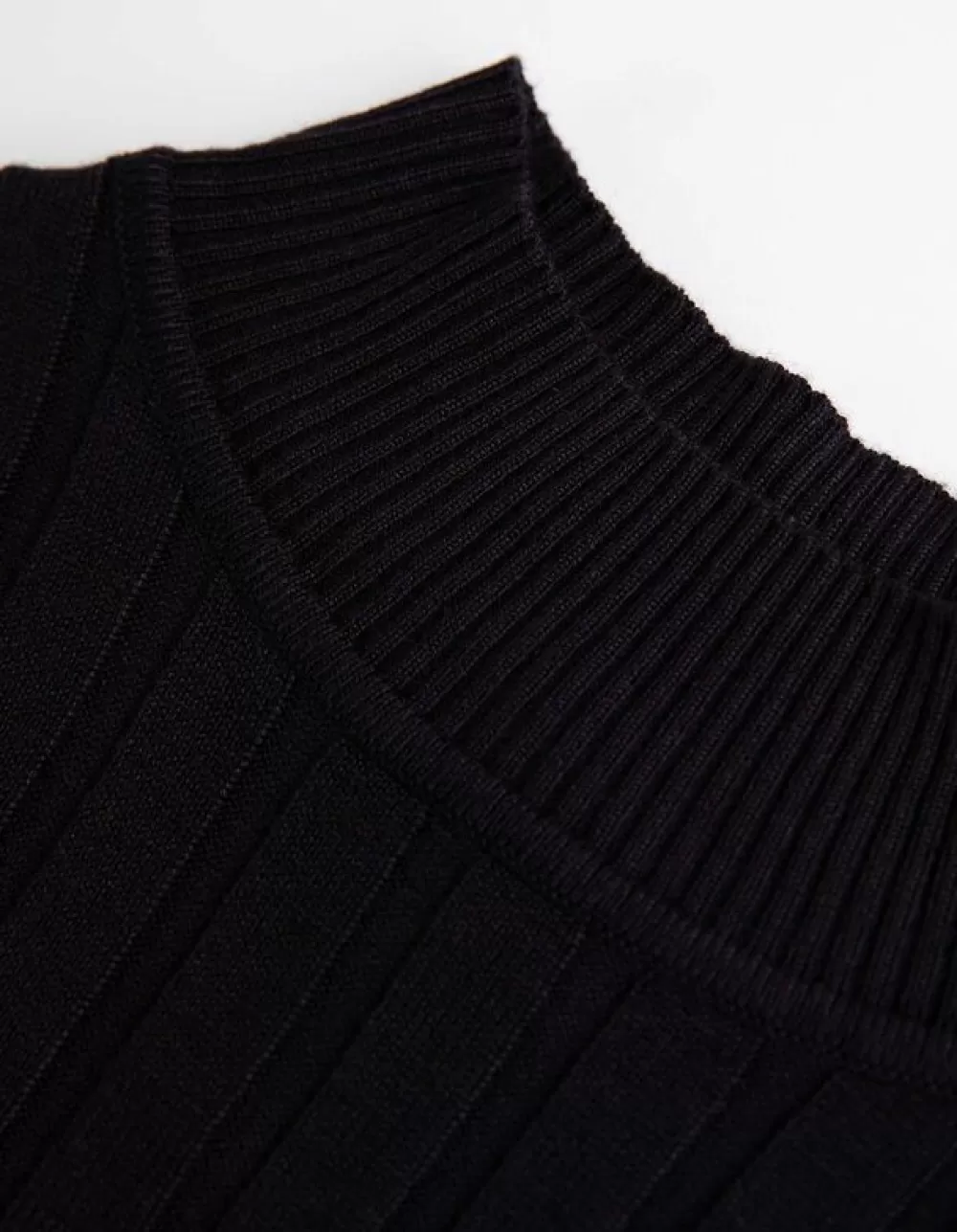ZwartEffenOpstaande KraagLange MouwenViscosemixGeribde StructuurMet StretchGeribde Structuur