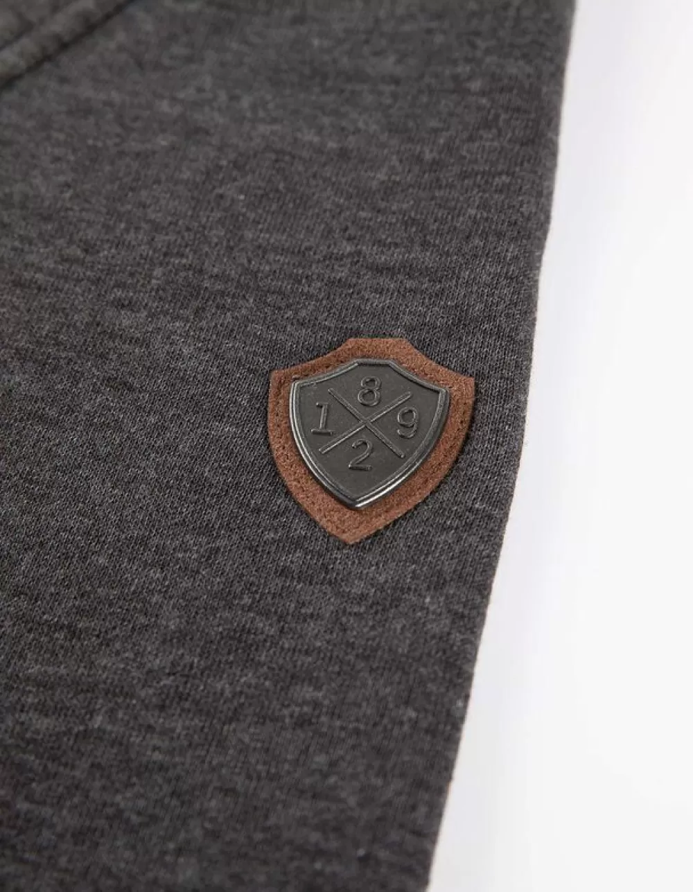 DonkergrijsGemeleerdKapLange MouwenSweatstofKoordKangoeroezakKangoeroezakLabel