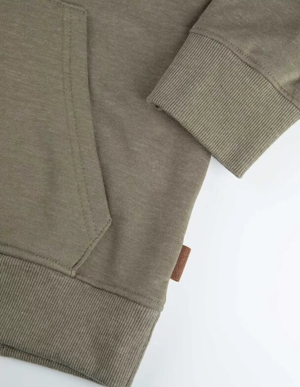 DonkergroenGemeleerdKapLange MouwenSweatstofKoordKangoeroezakKangoeroezakLabel