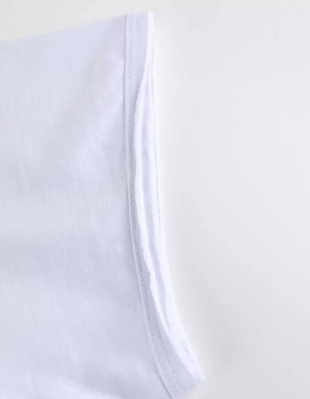 WitEffenRonde Hals Met KnoopjesKorte MouwenKatoenPrintPrintSierknopen