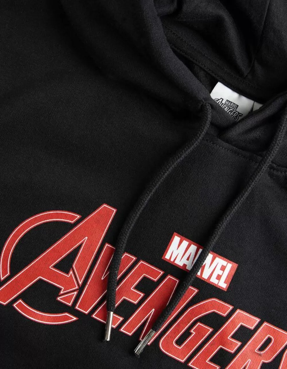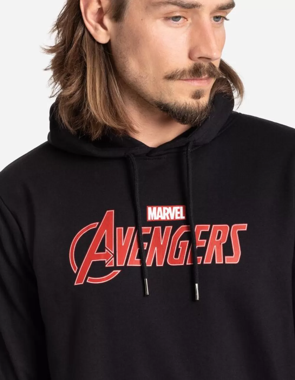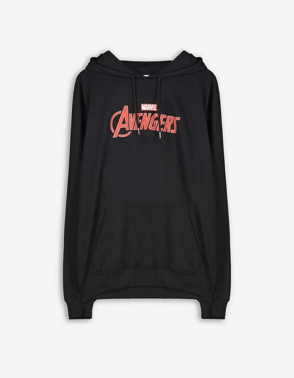 ZwartMarvelKapLange MouwenSweatstofKoordTekstprintKangoeroezak