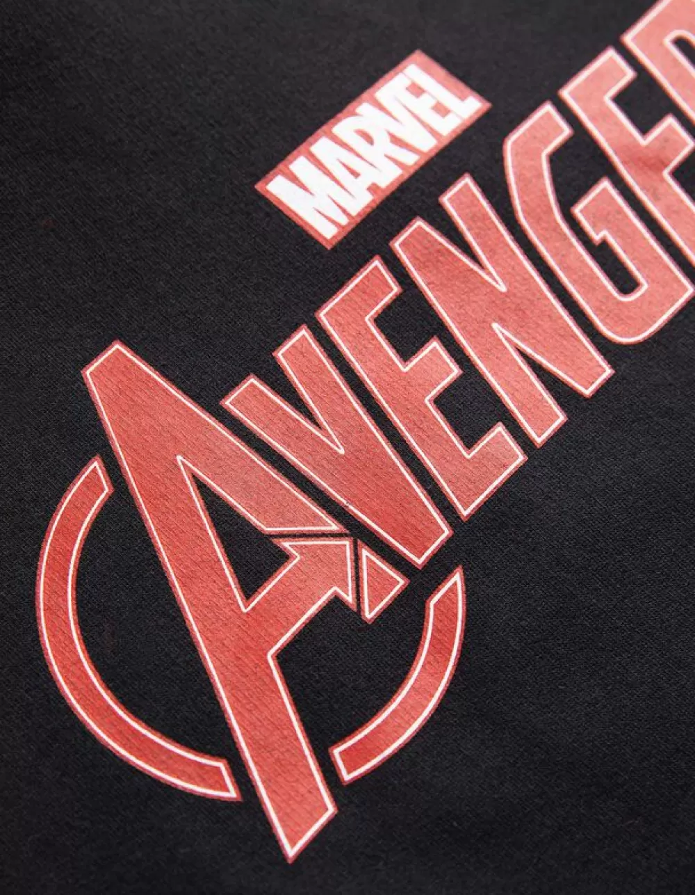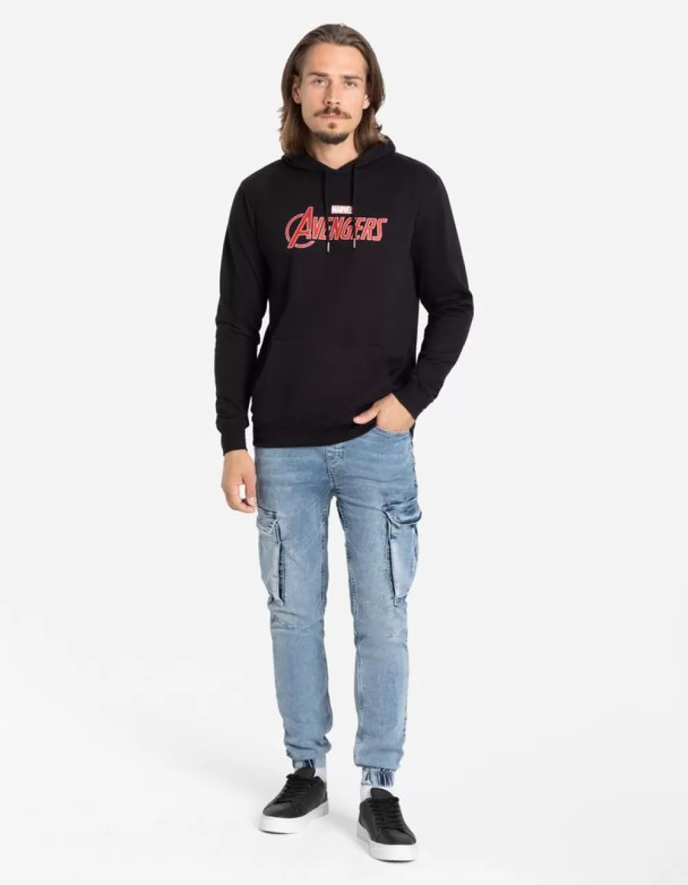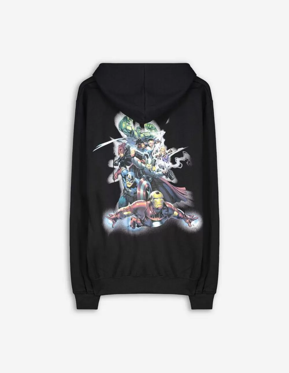 ZwartMarvelKapLange MouwenSweatstofKoordTekstprintKangoeroezak