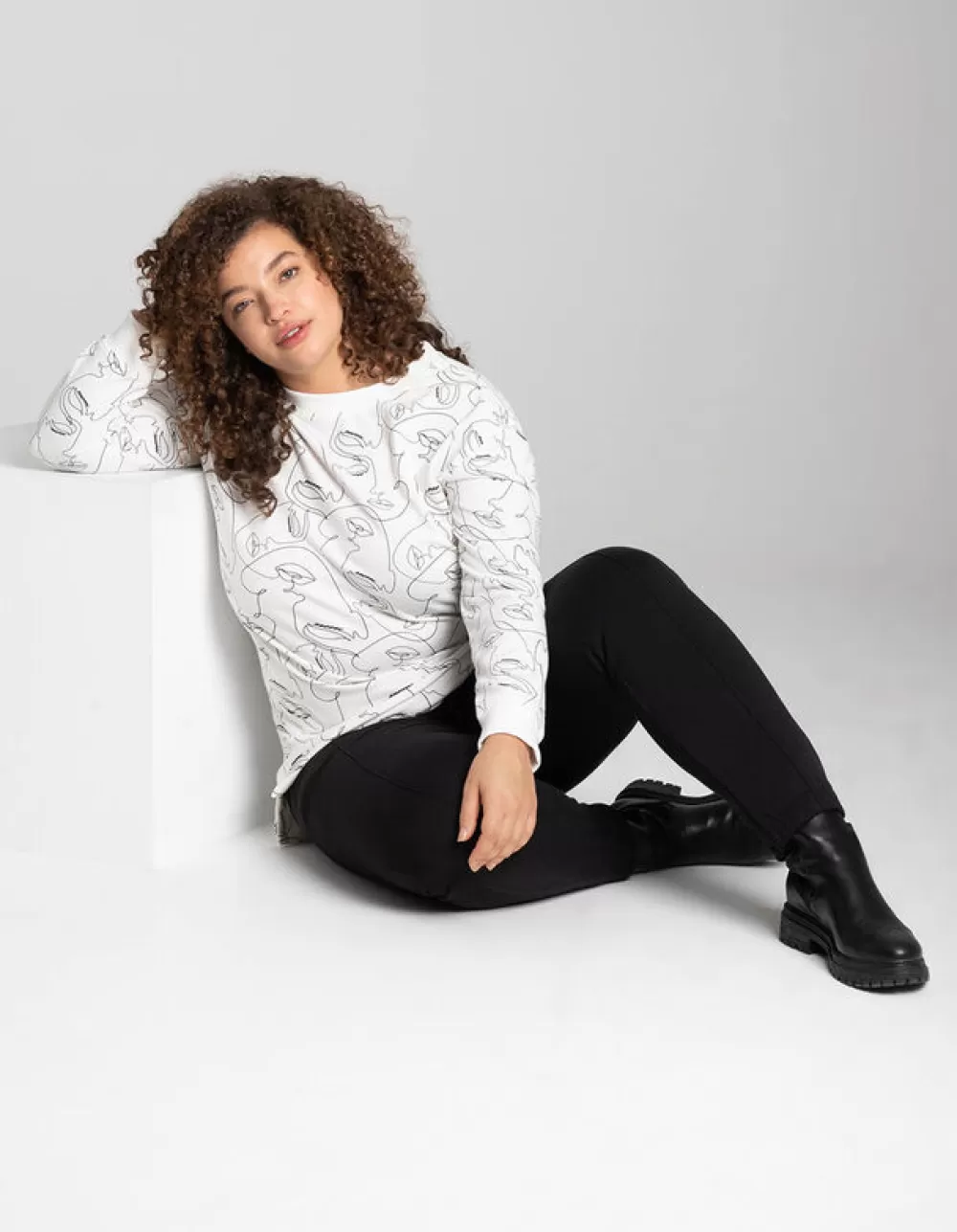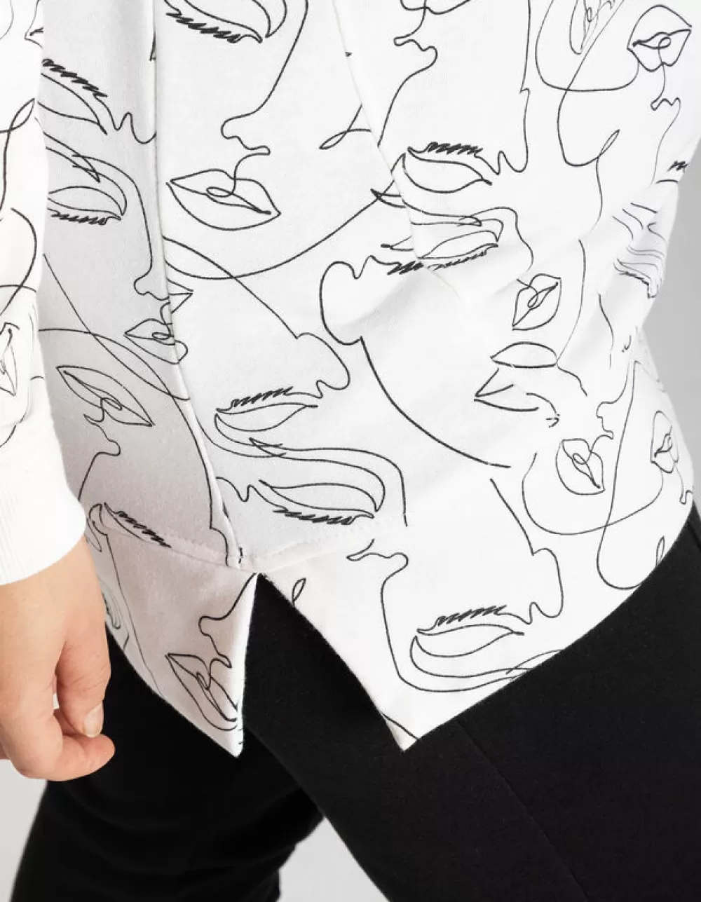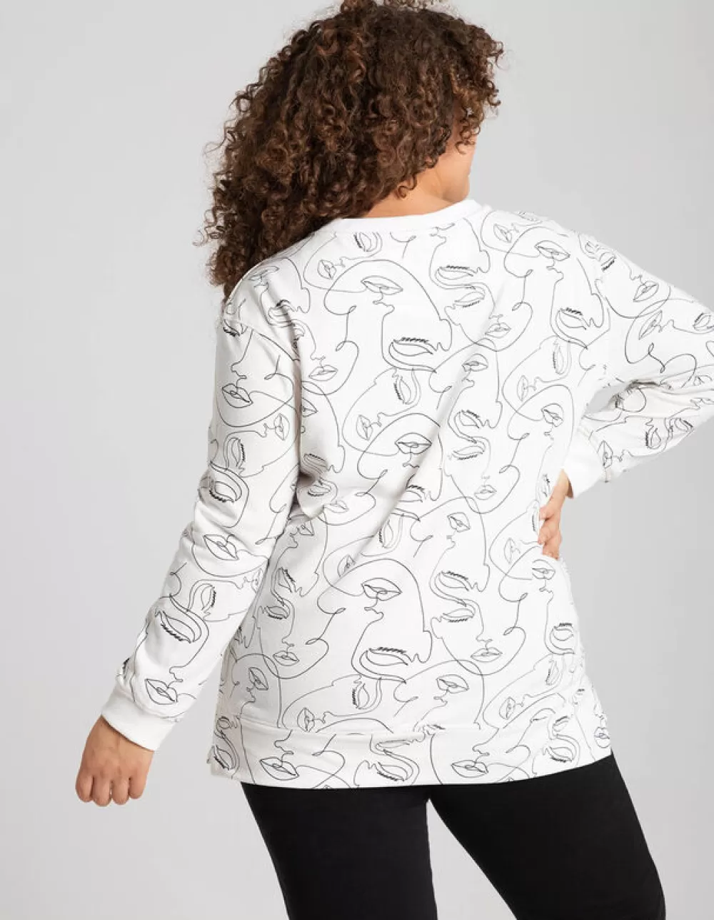 WitMotief All-OverRonde HalsLange MouwenSweatstofElastische Randen