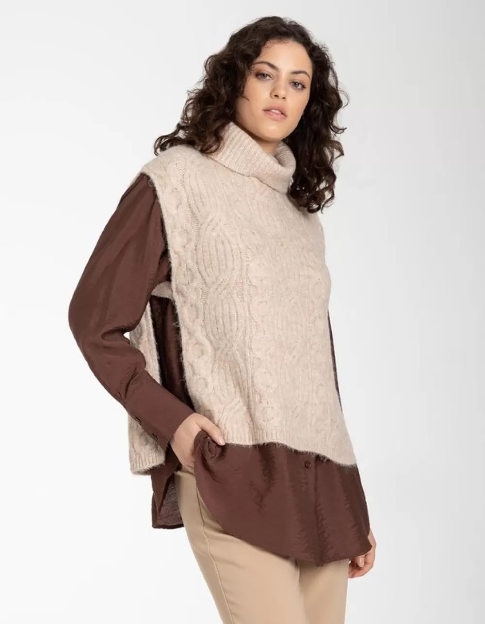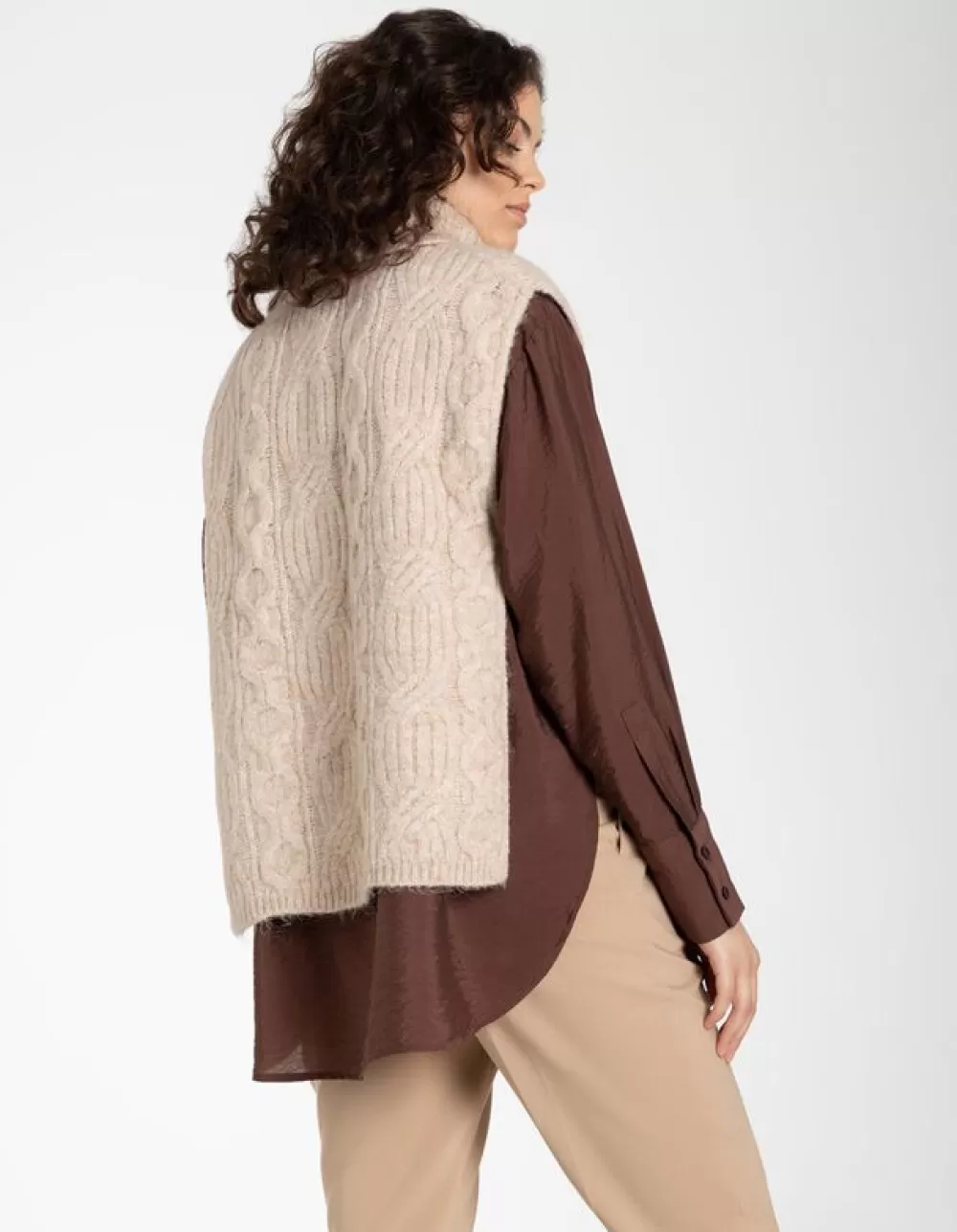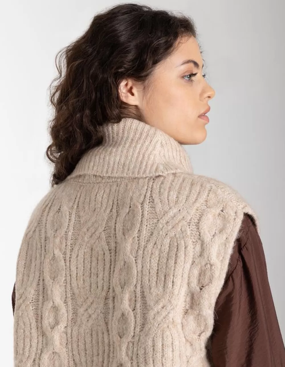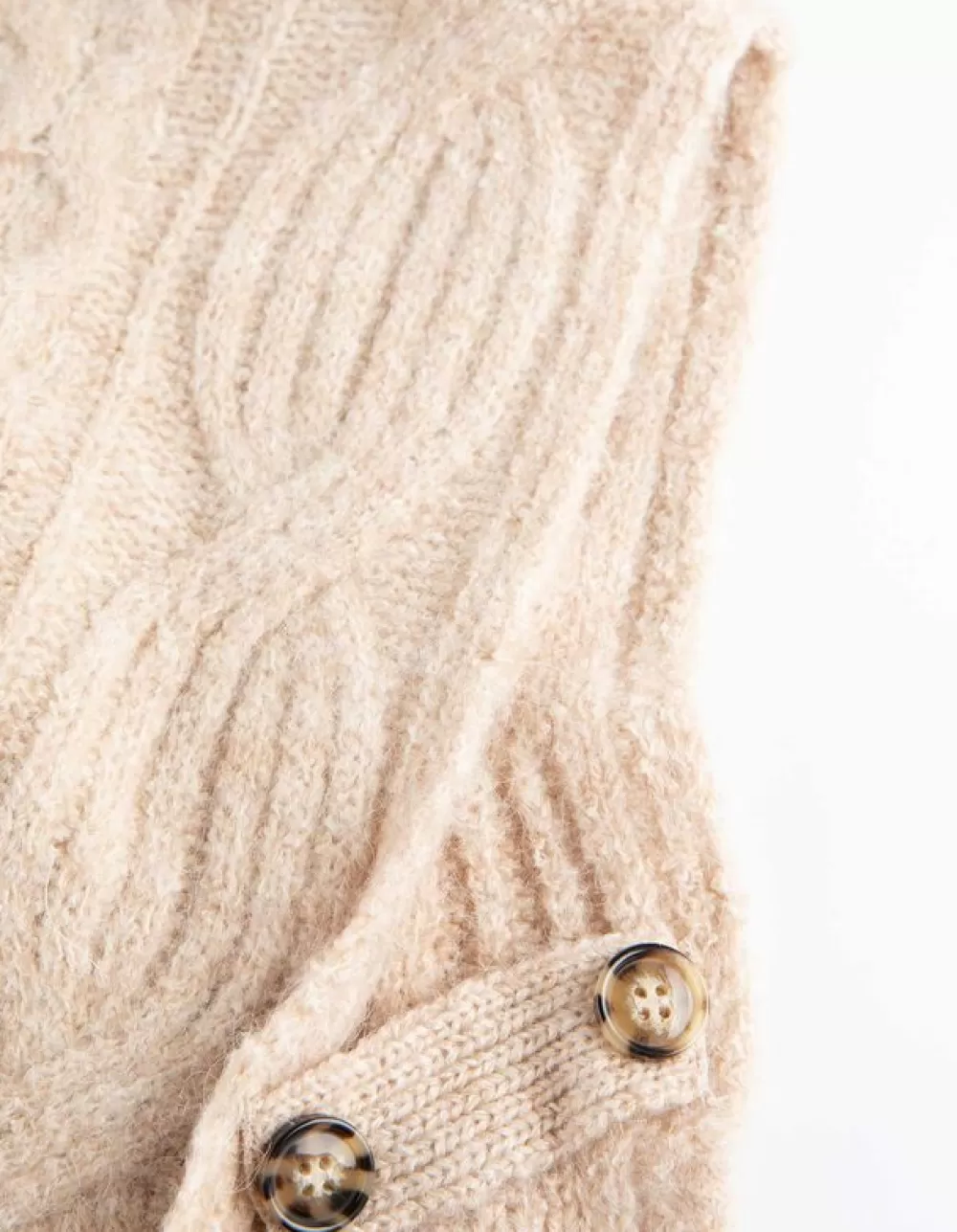 BeigeKabelpatroonColMouwloosWol LookZonder SluitingZacht Materiaal