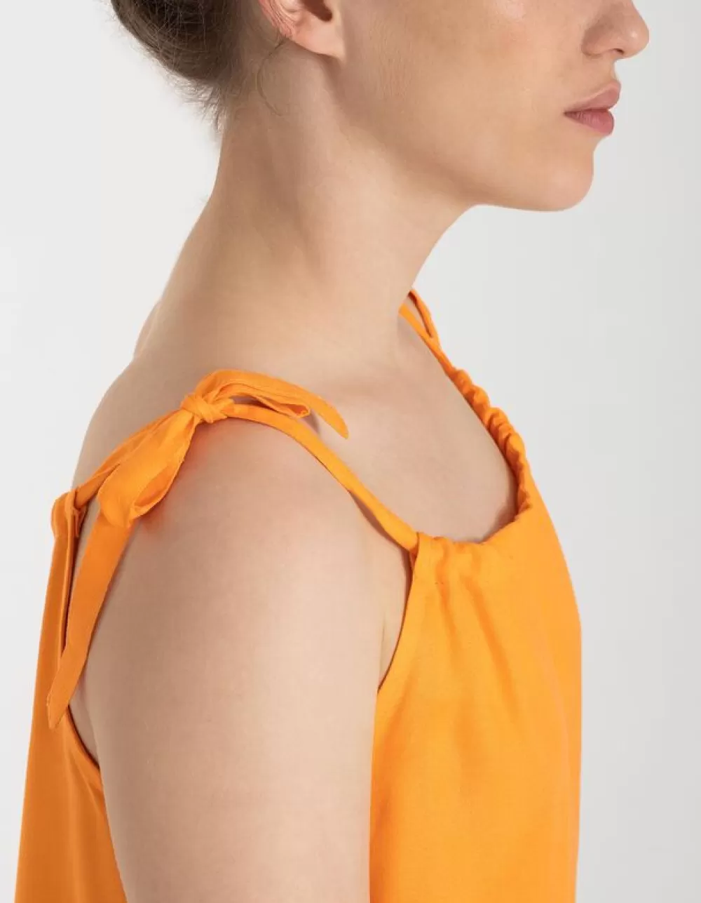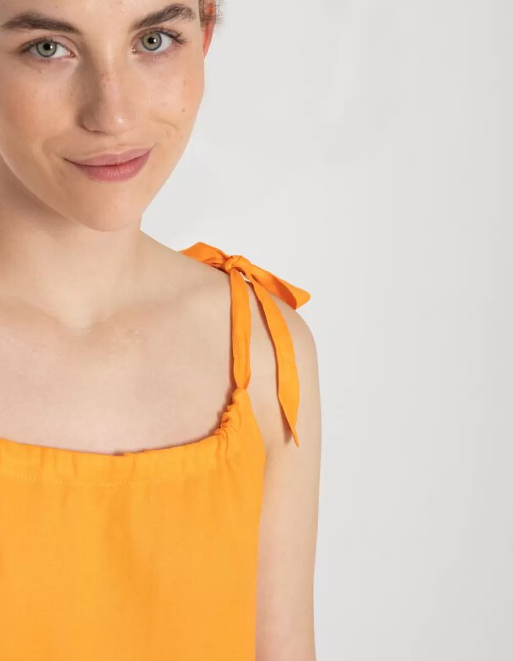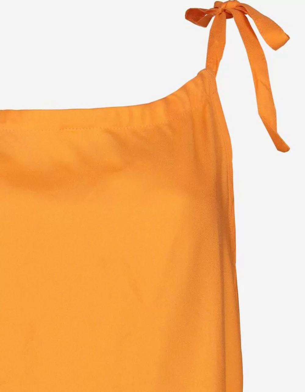OranjeEffenRonde HalsSmalle SchouderbandjesViscoseVetersluitingElastische Randen