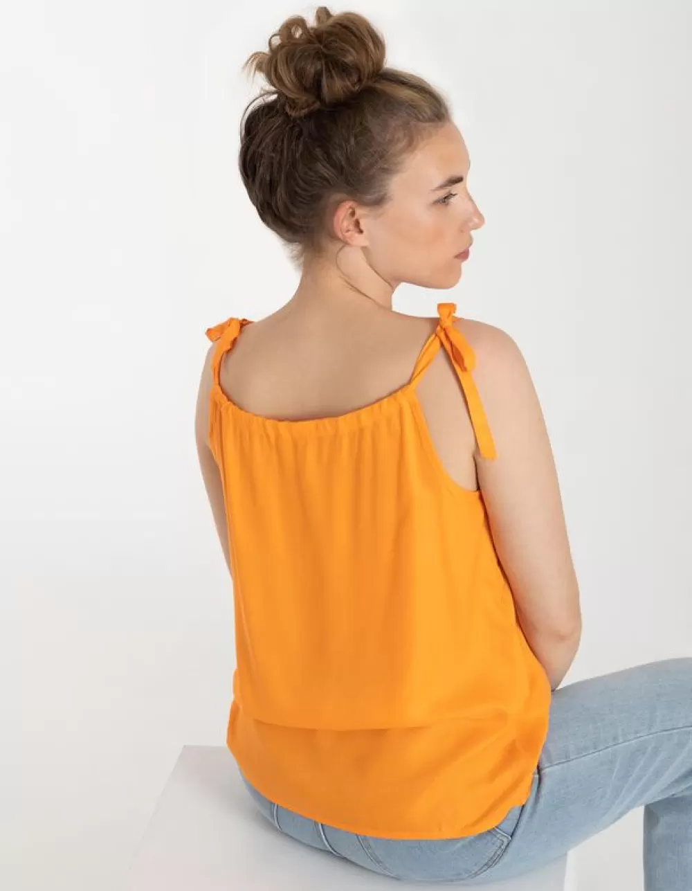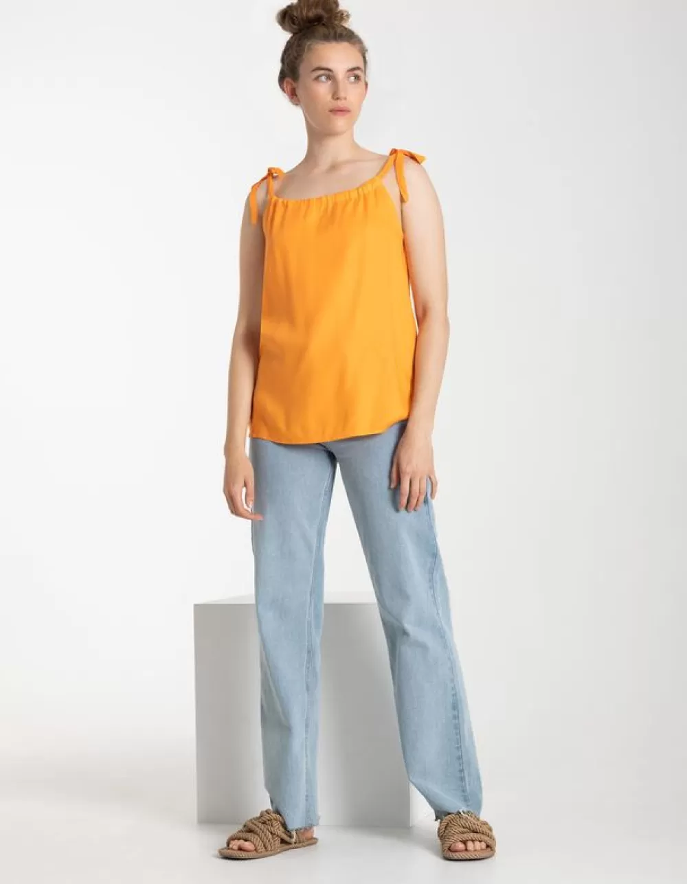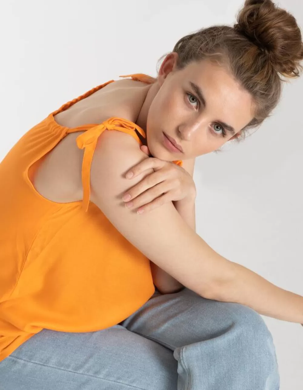 OranjeEffenRonde HalsSmalle SchouderbandjesViscoseVetersluitingElastische Randen