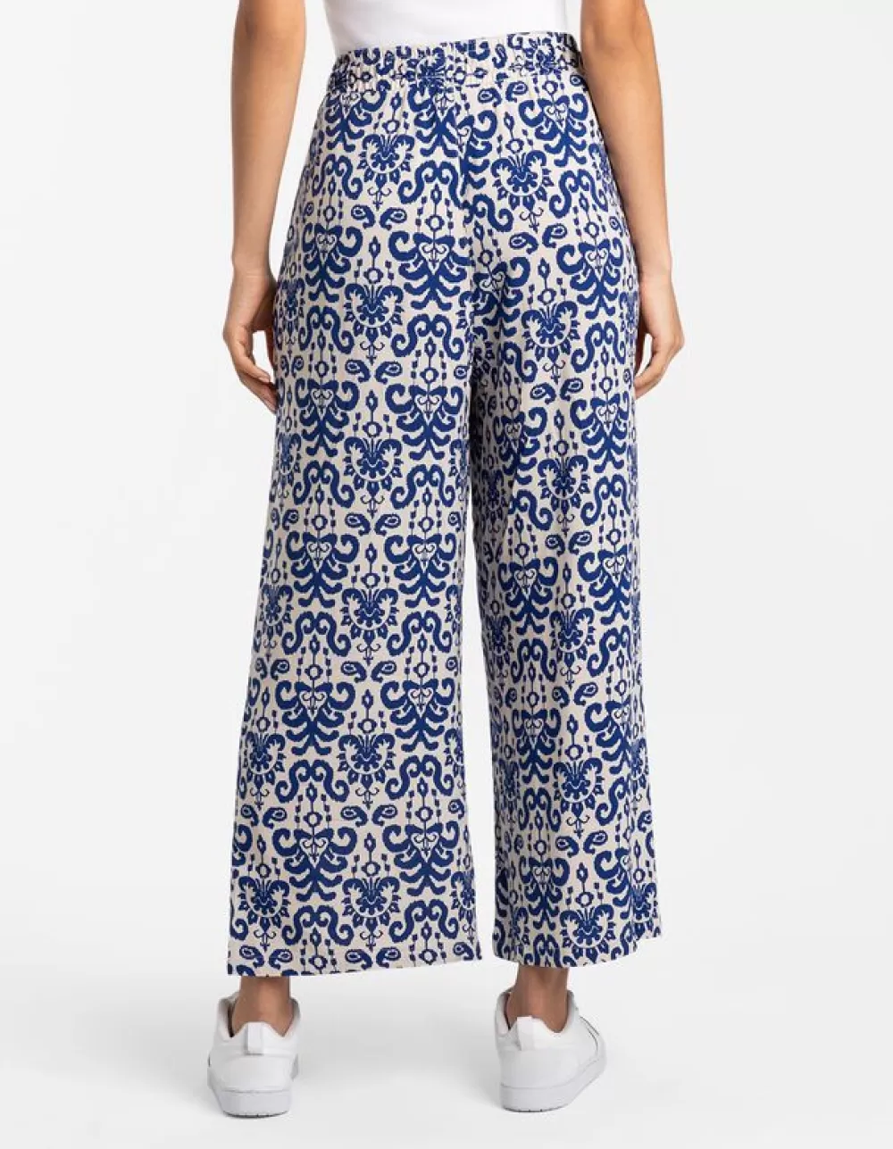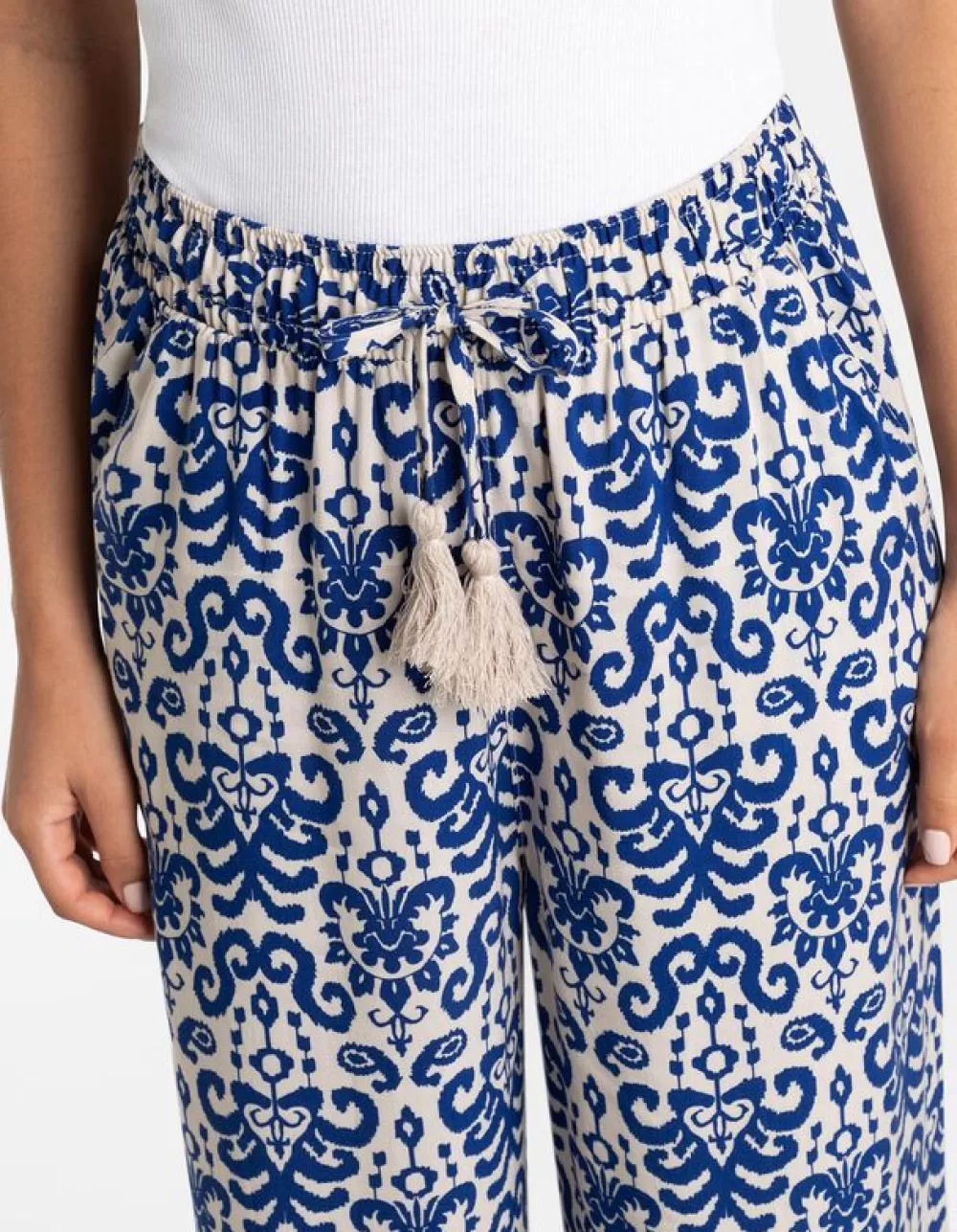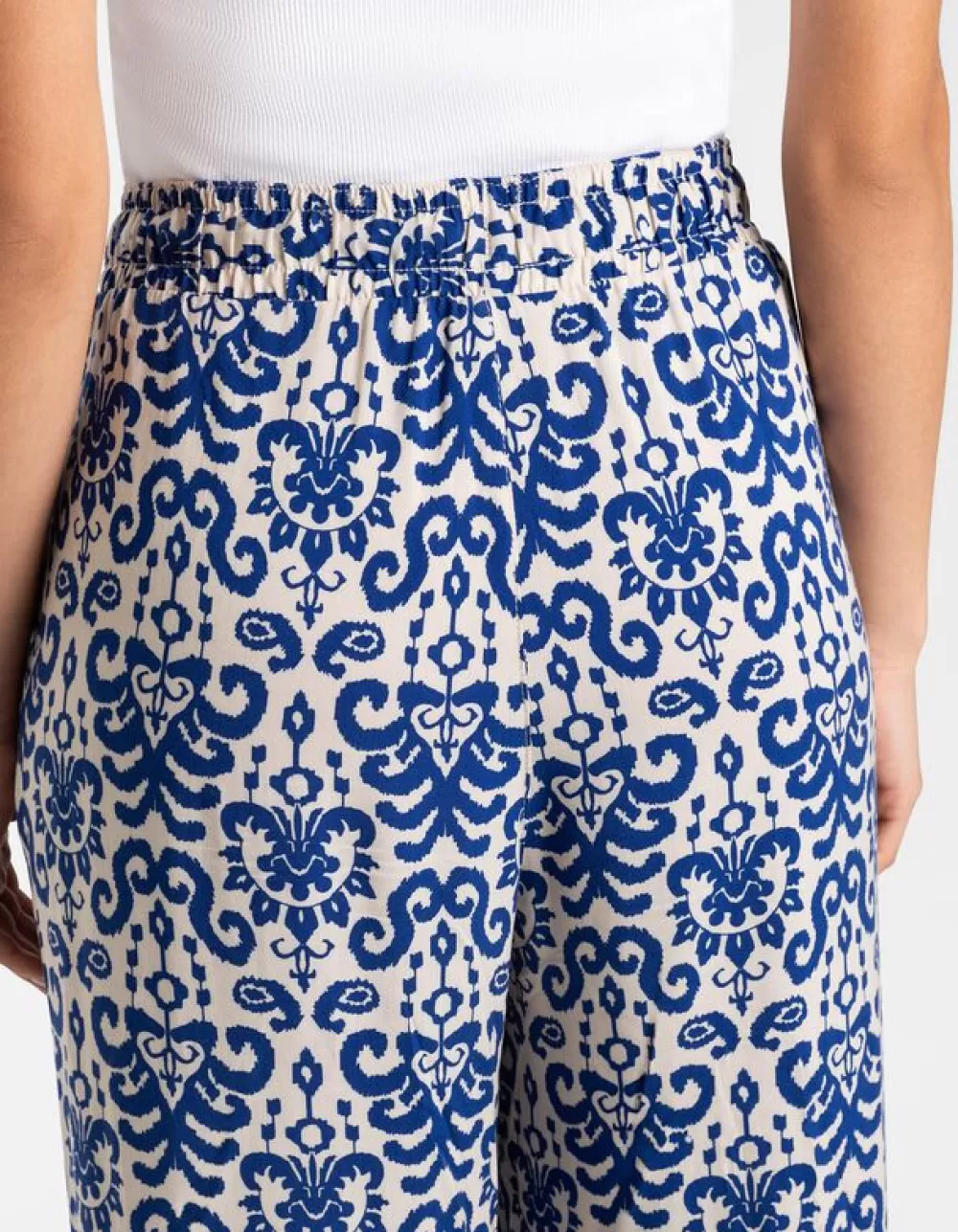 DonkerblauwMotief All-OverHoge TailleEnkellengteViscoseKoordSteekzakkenTunnelkoord Op TaillehoogteElastische Band