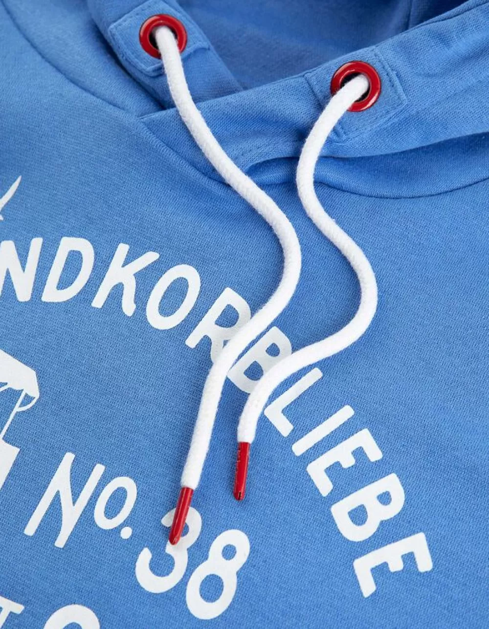 BlauwEffenKapLange MouwenKatoenKoordCapuchon Met TunnelkoordPrintRibboorden