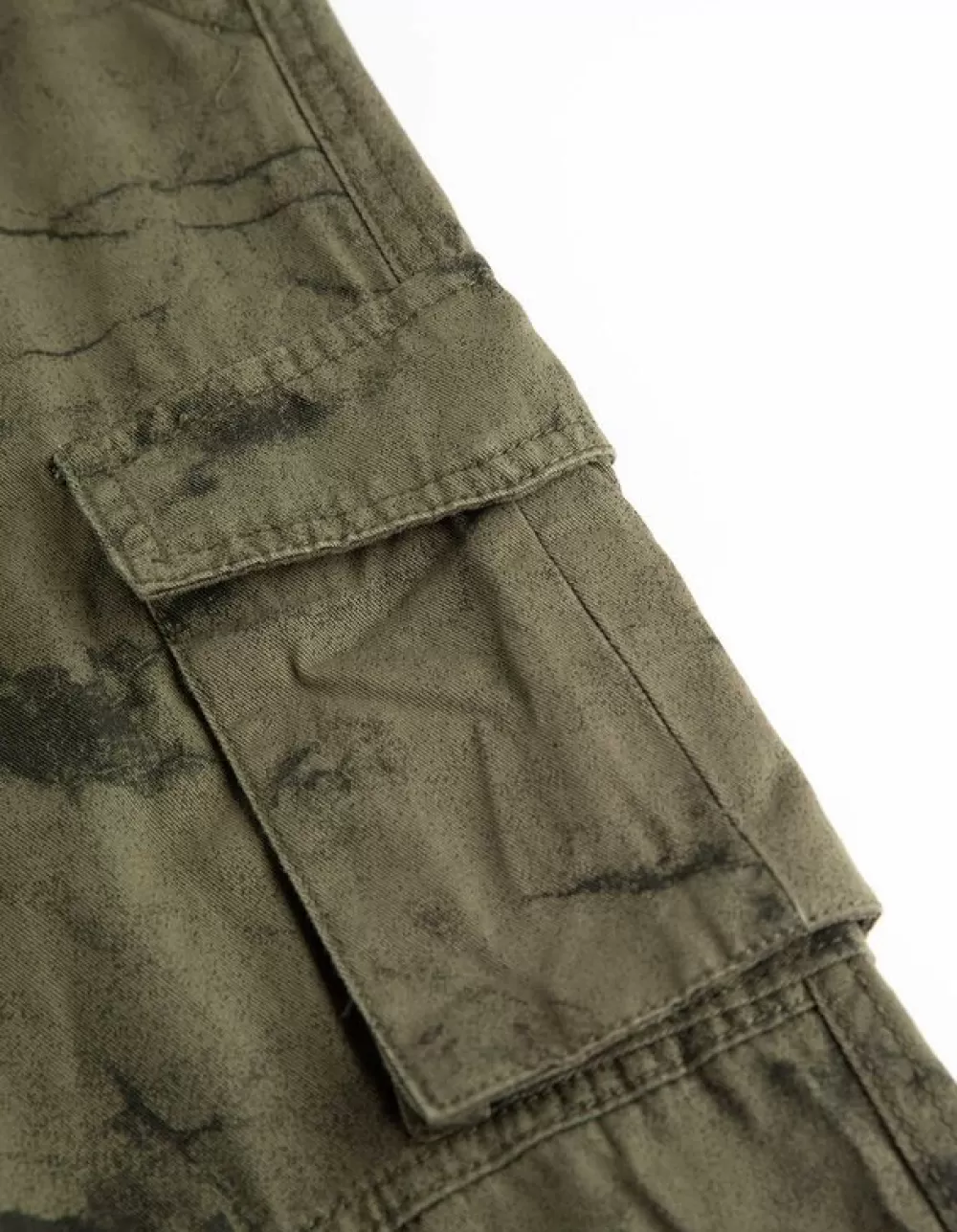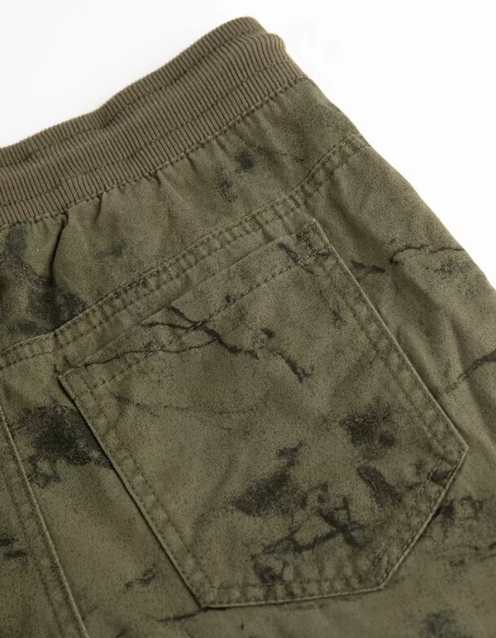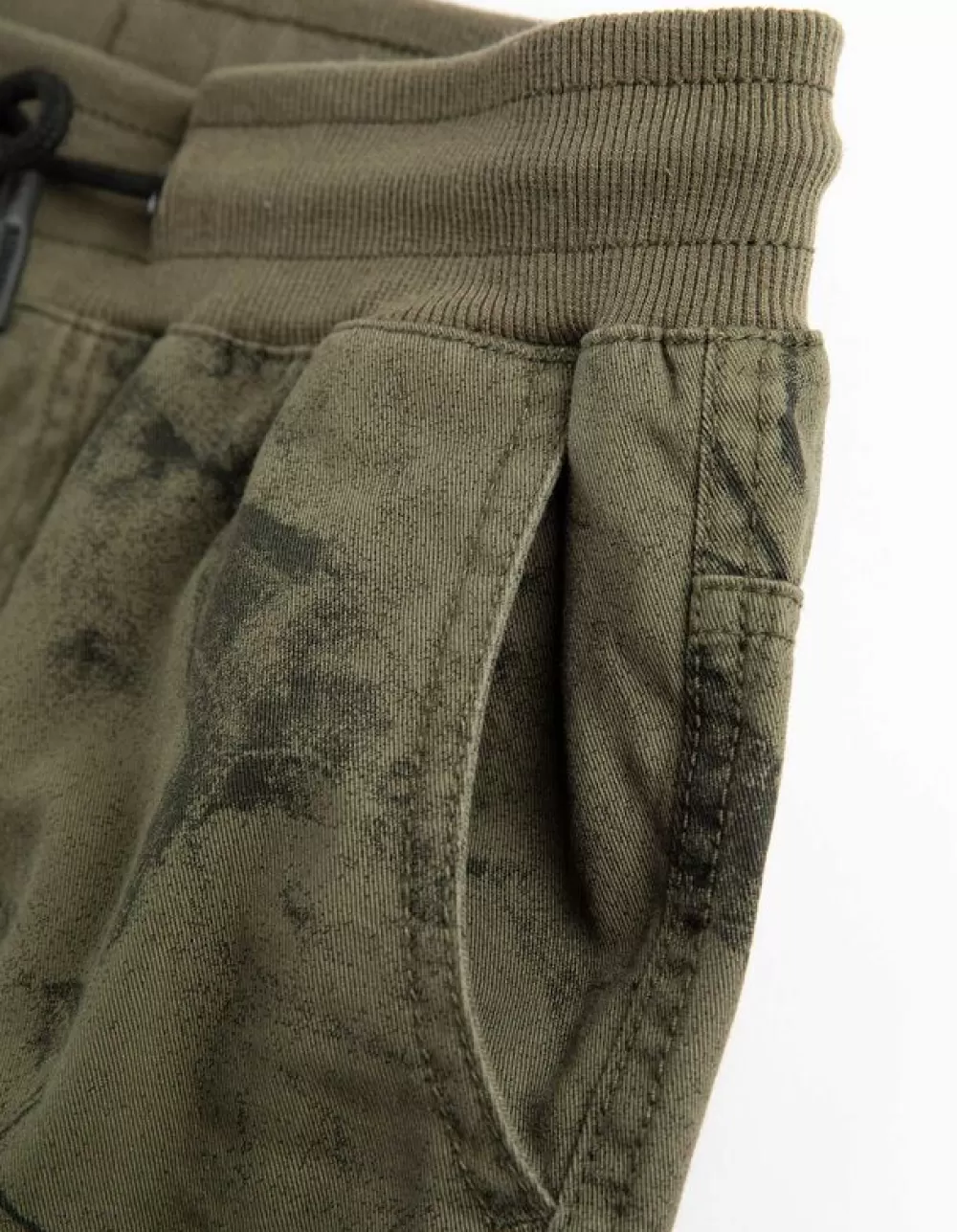 DonkergroenMotief All-OverRegular WaistRinse WashedNormale LengteKatoenOpgestikte ZakkenSteekzakkenElastische Band