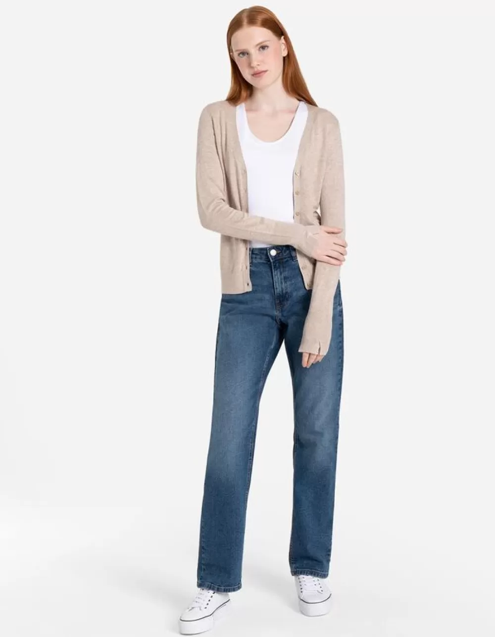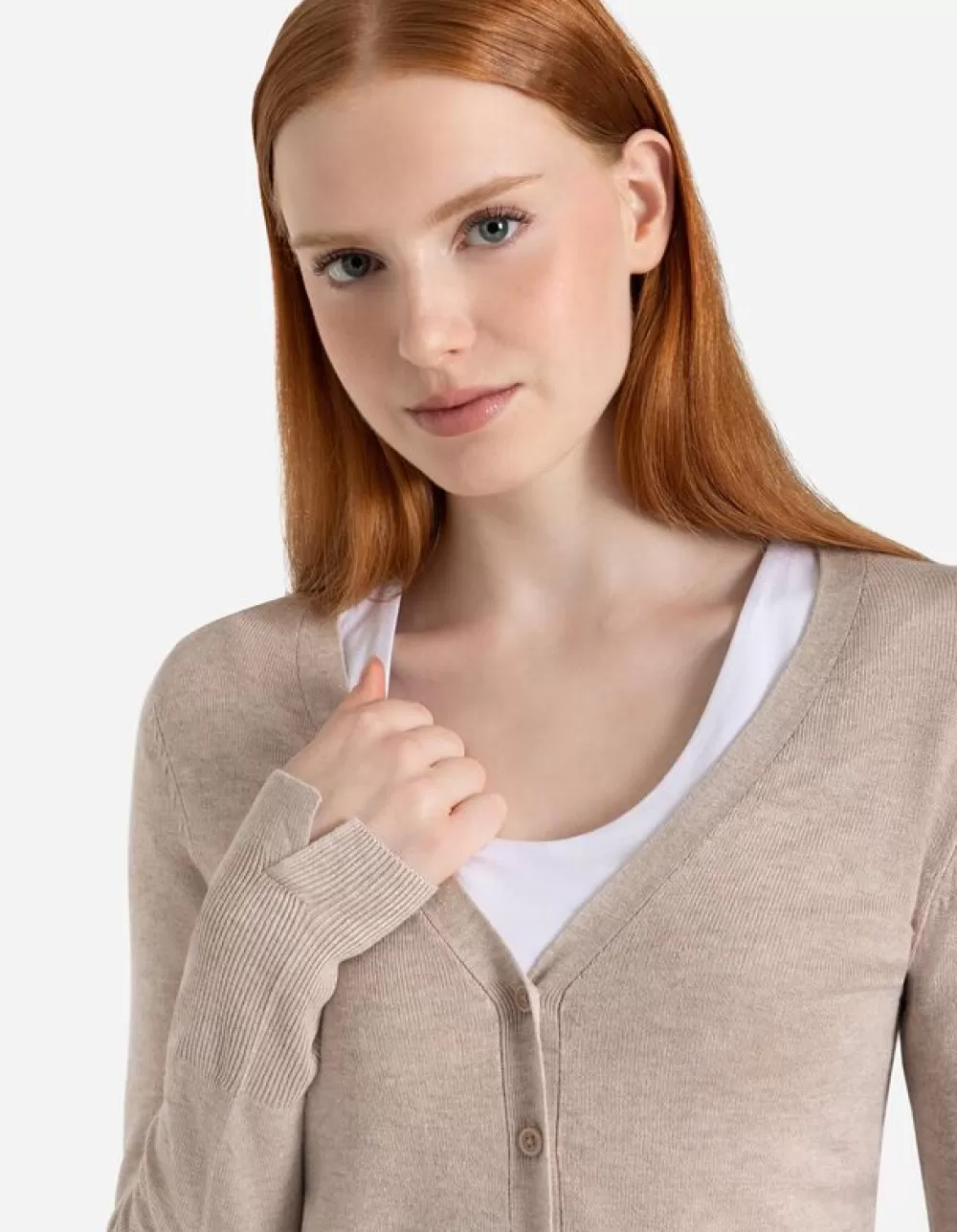 BeigeEffenV-HalsLange MouwenViscosemixKnoopsluitingMet Stretch