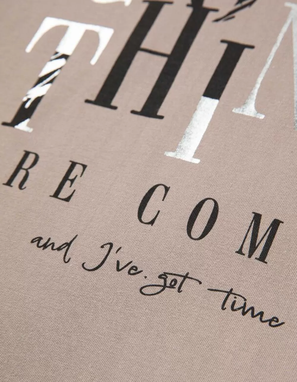 BeigeEffenRonde HalsLange MouwenKatoenGlitterprint