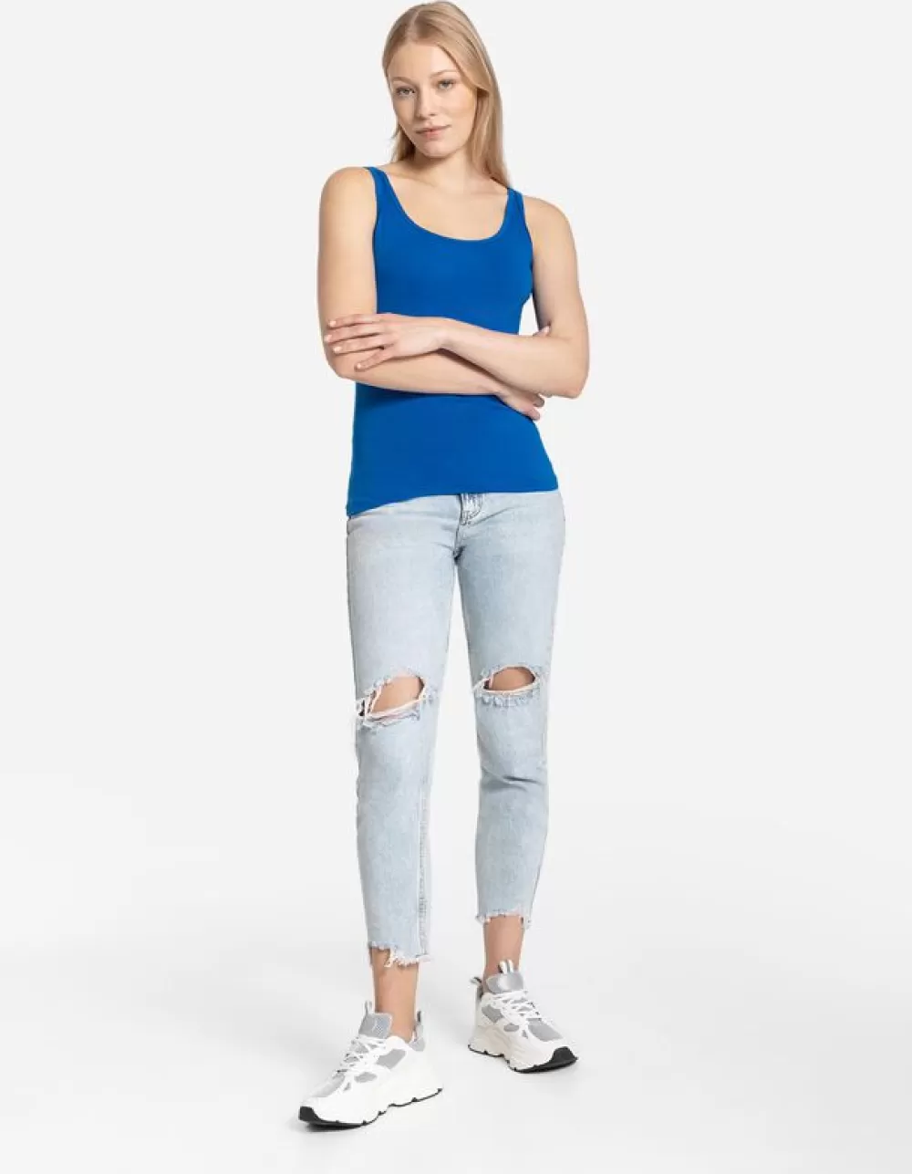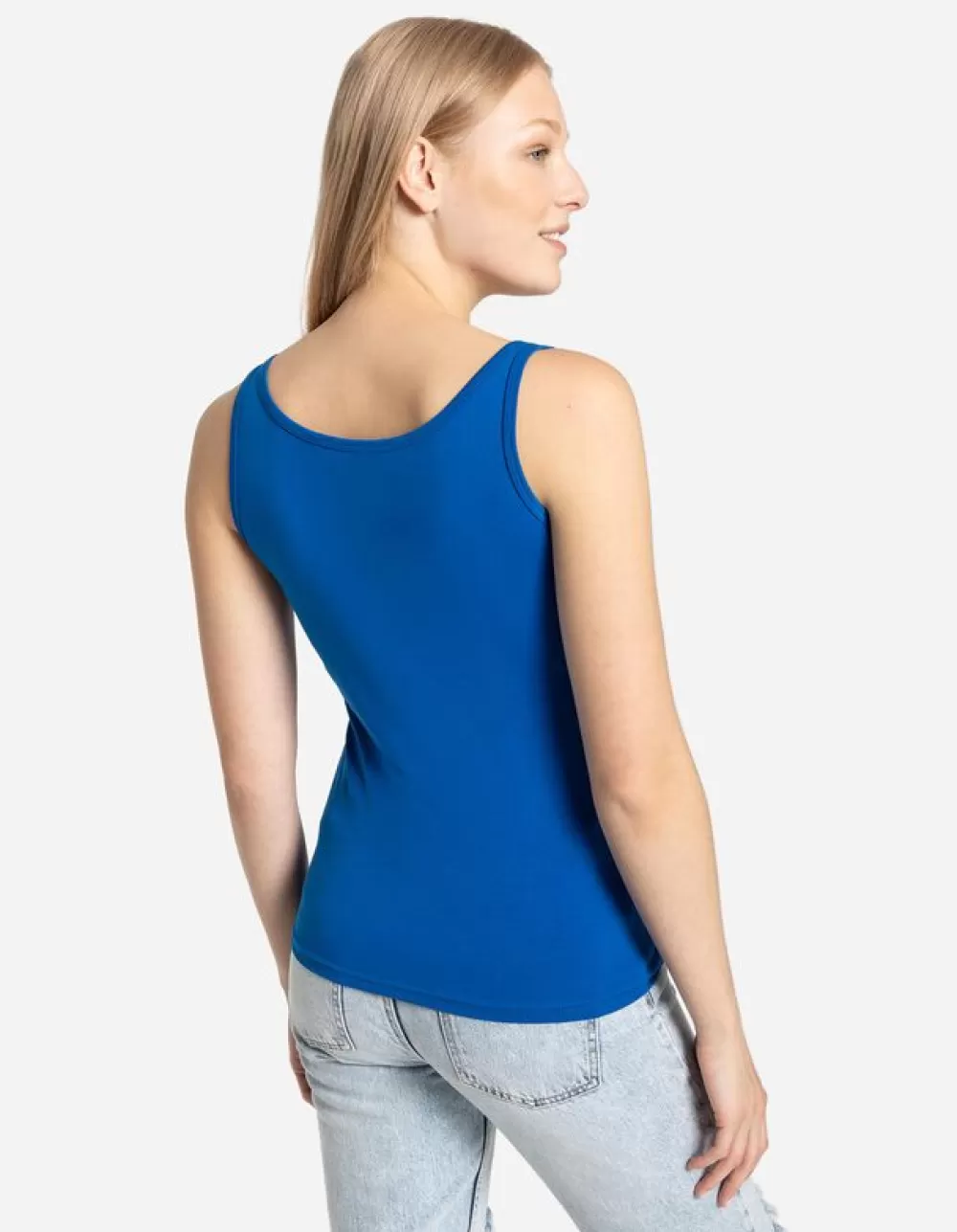 BlauwEffenRonde HalsBrede SchouderbandjesKatoenmixZonder SluitingMet Stretch