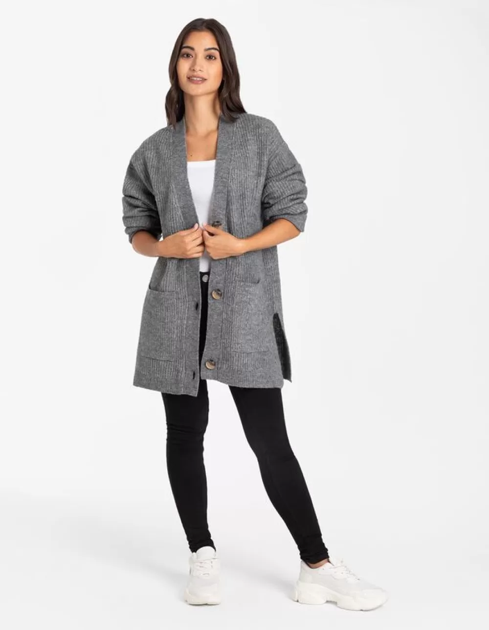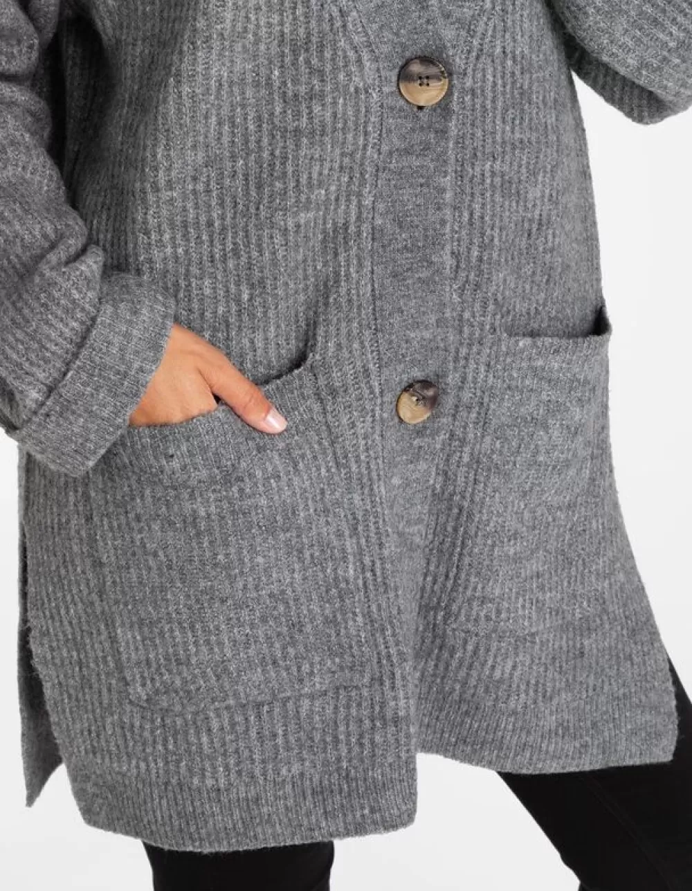 GrijsEffenV-HalsMouwen Met Vaste OmslagBreigoedKnoopsluitingOpgestikte ZakkenMet Stretch