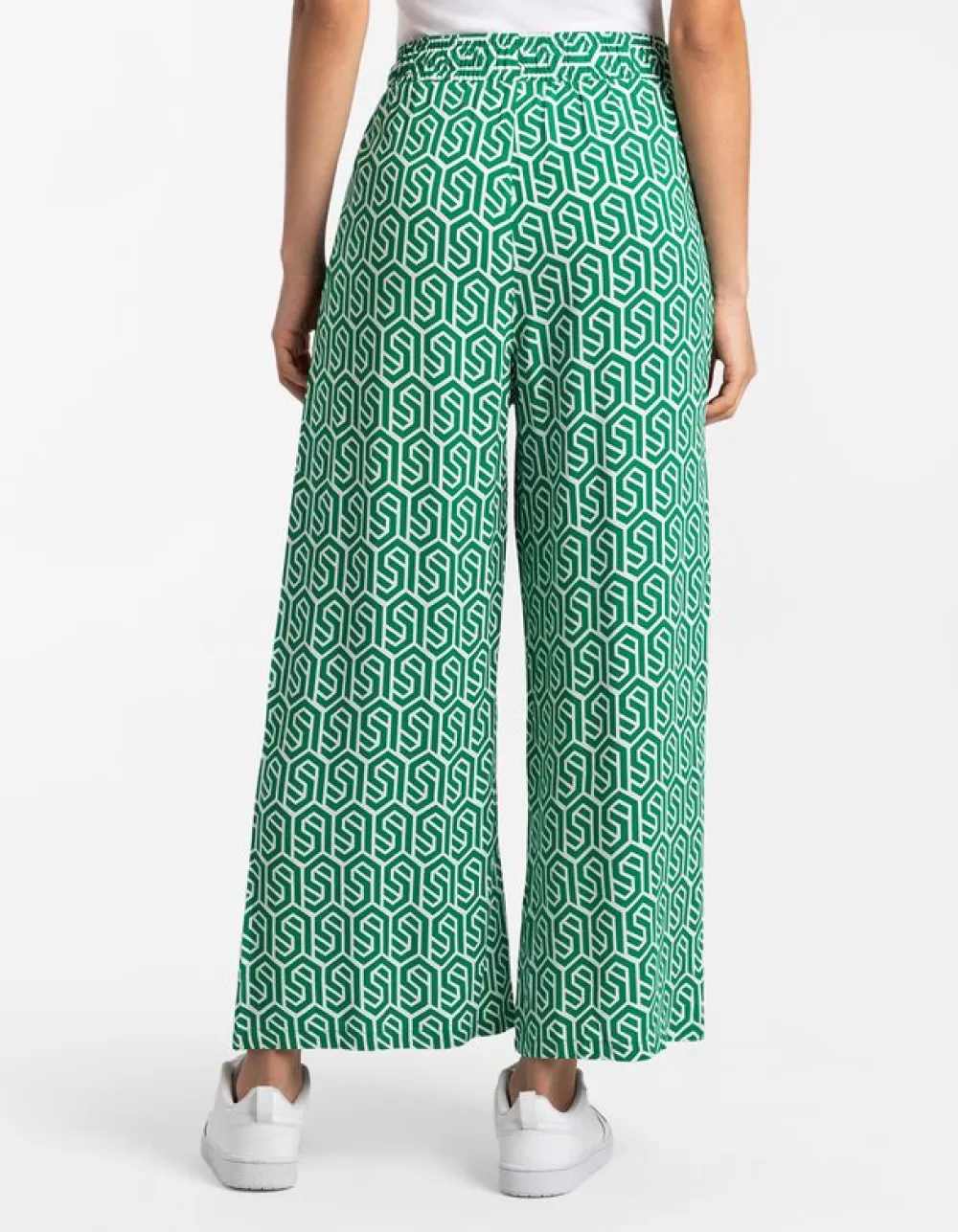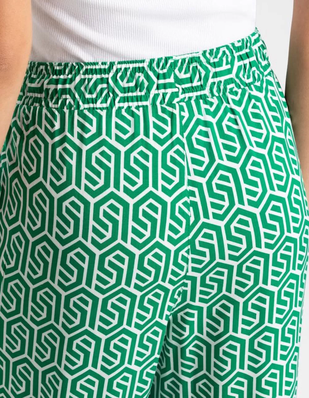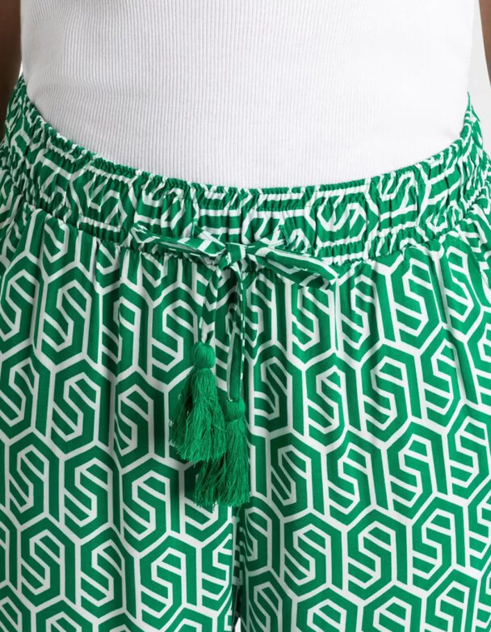 GroenGeometrisch MotiefHoge TailleEnkellengteViscoseKoordSteekzakkenTunnelkoord Op TaillehoogteElastische Band