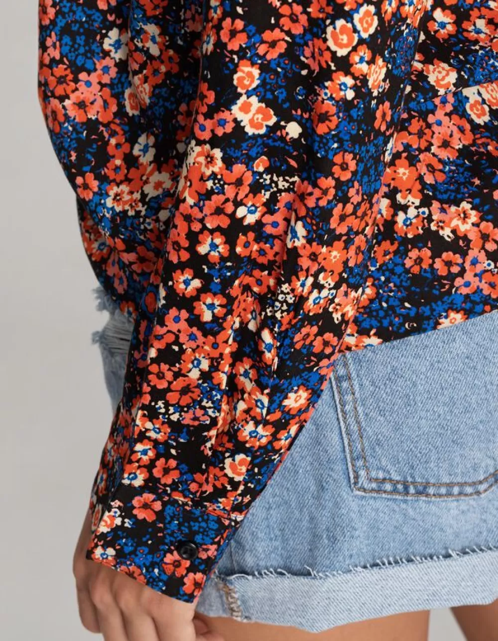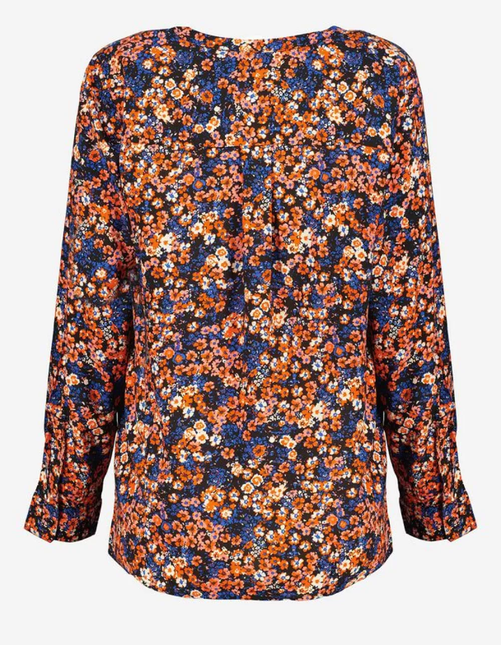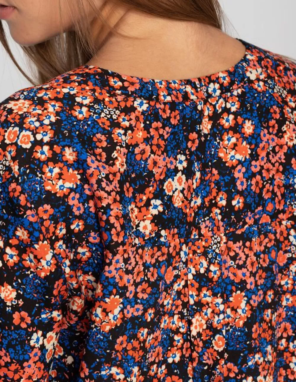 OranjeBloemenmotiefRonde Hals Met KnoopjesLange MouwenViscoseElastische Randen