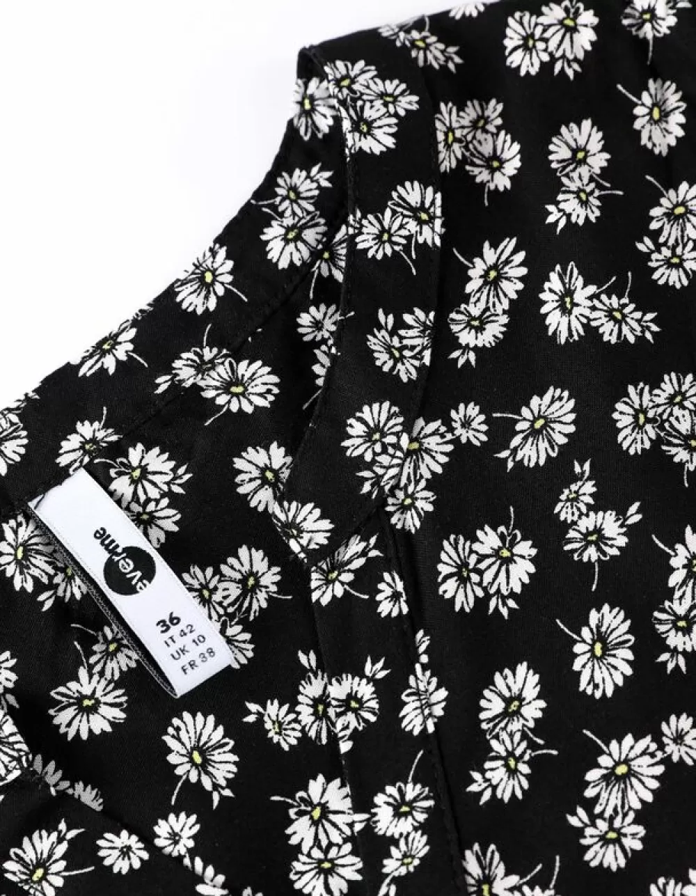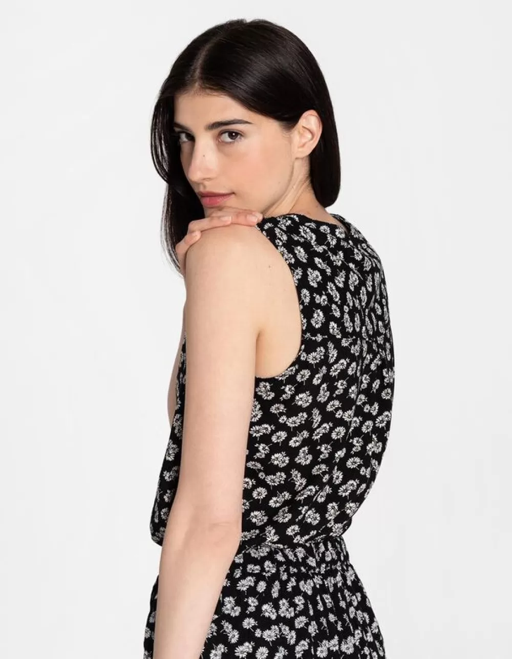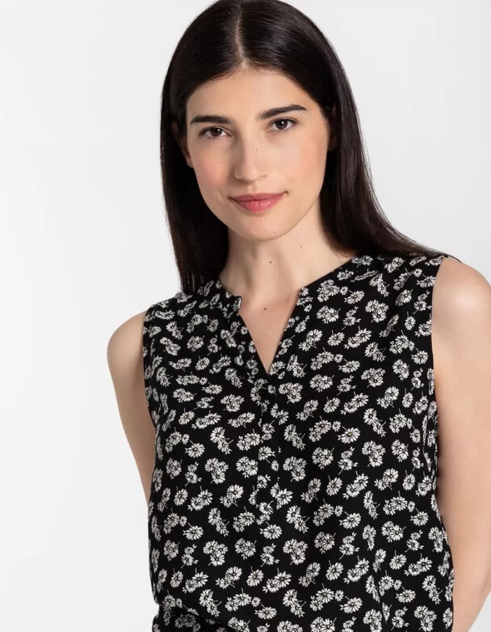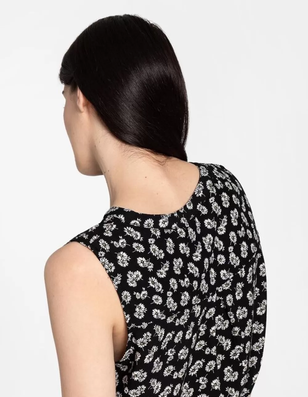 ZwartBloemenmotiefRonde Hals Met KnoopjesMouwloosLenzing™ Ecovero™Langer AchterpandLanger AchterpandLanger Achterpan…