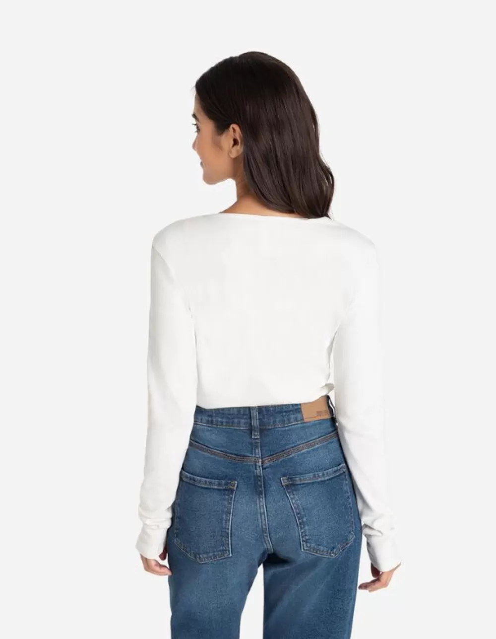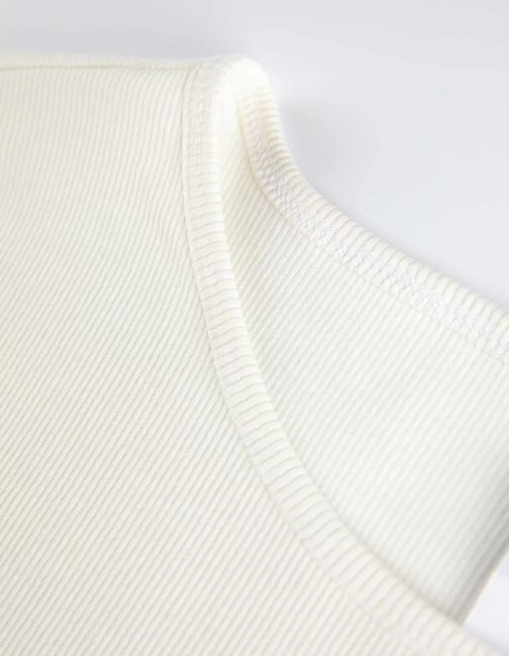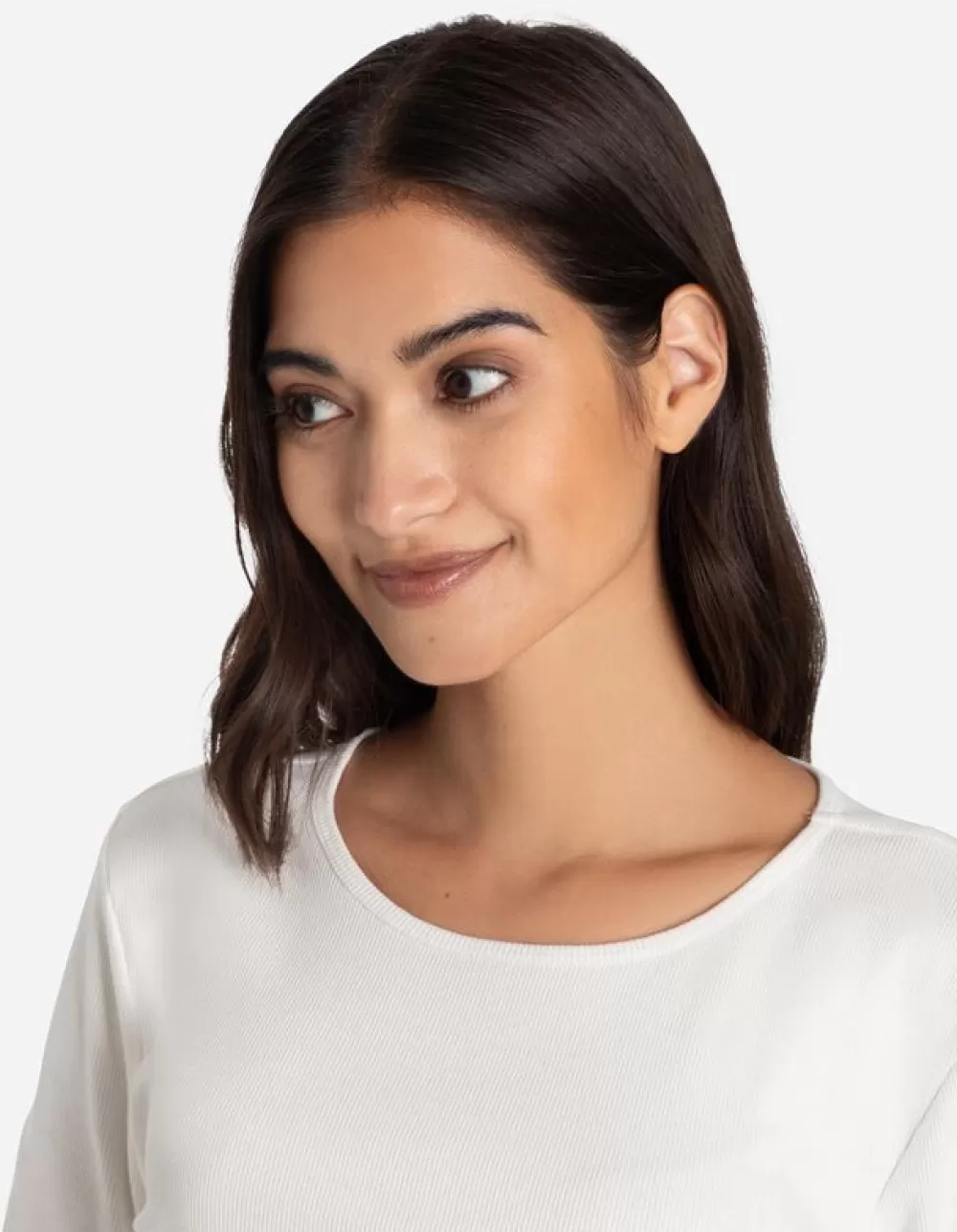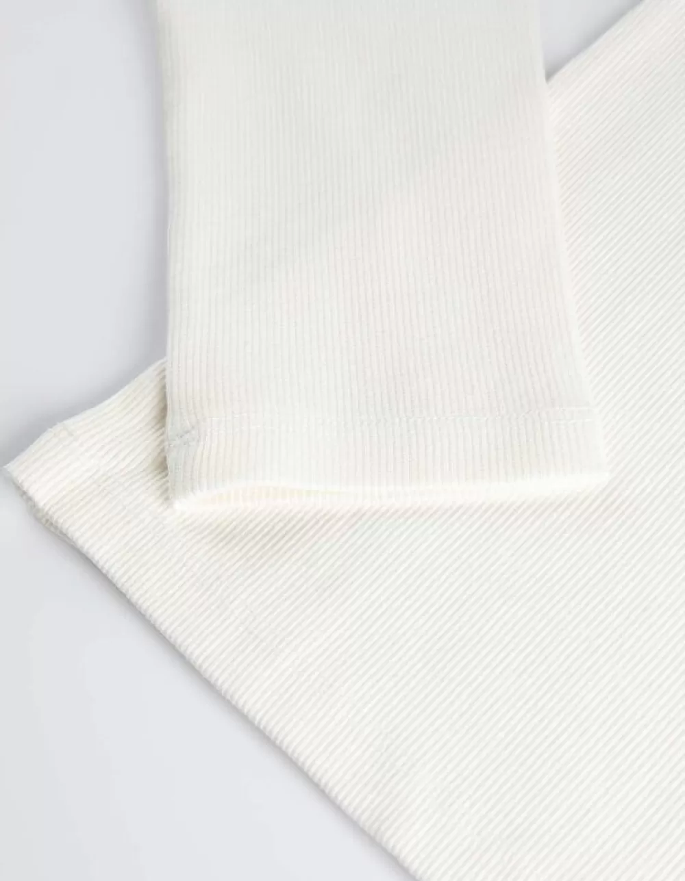 WitEffenRonde HalsLange MouwenKatoenmixGeribde Structuur