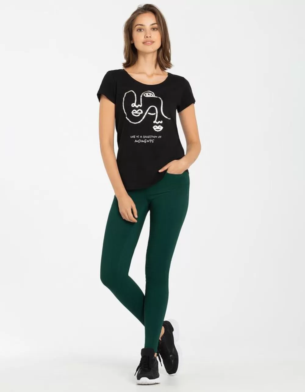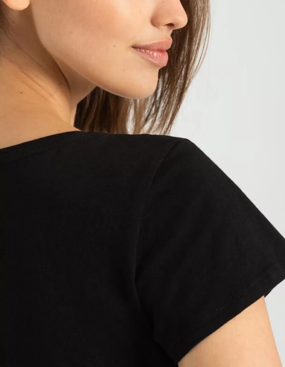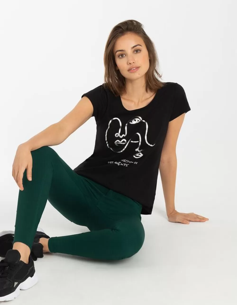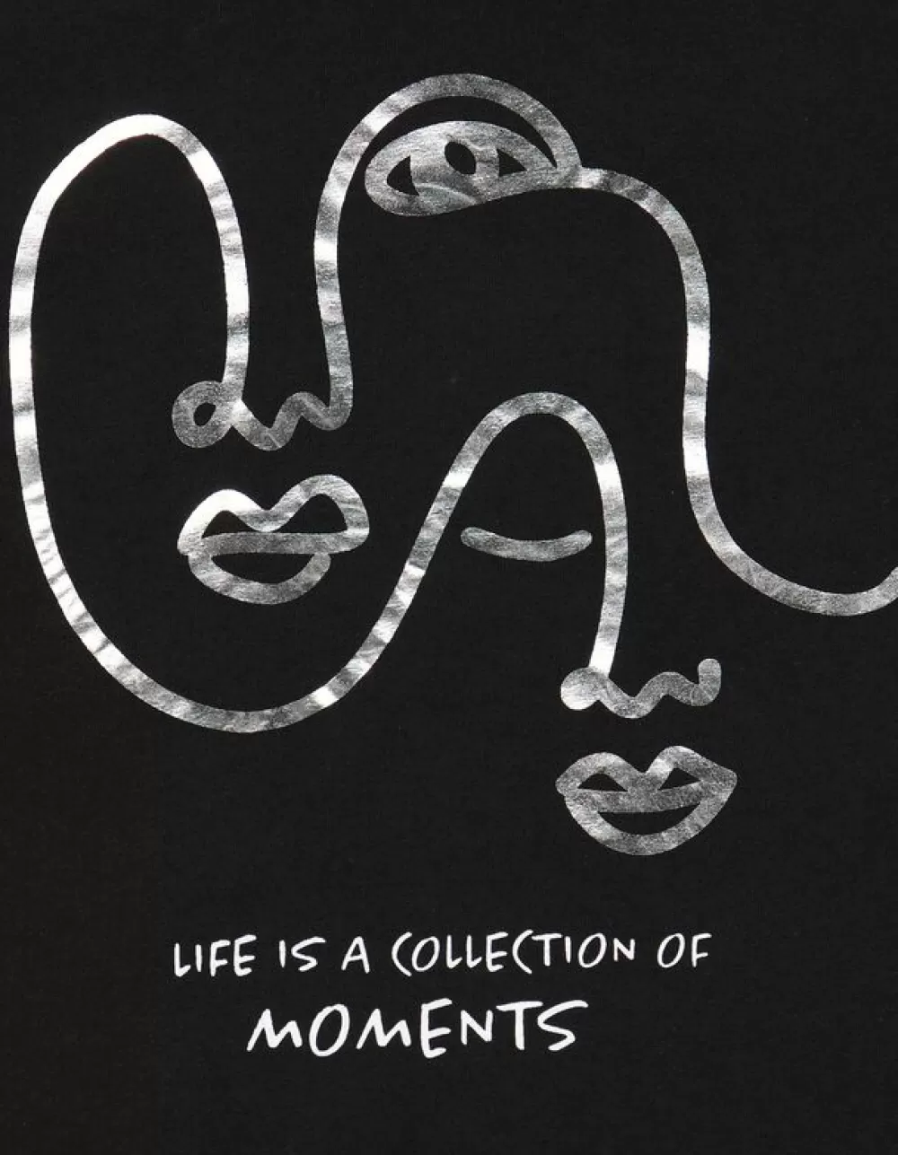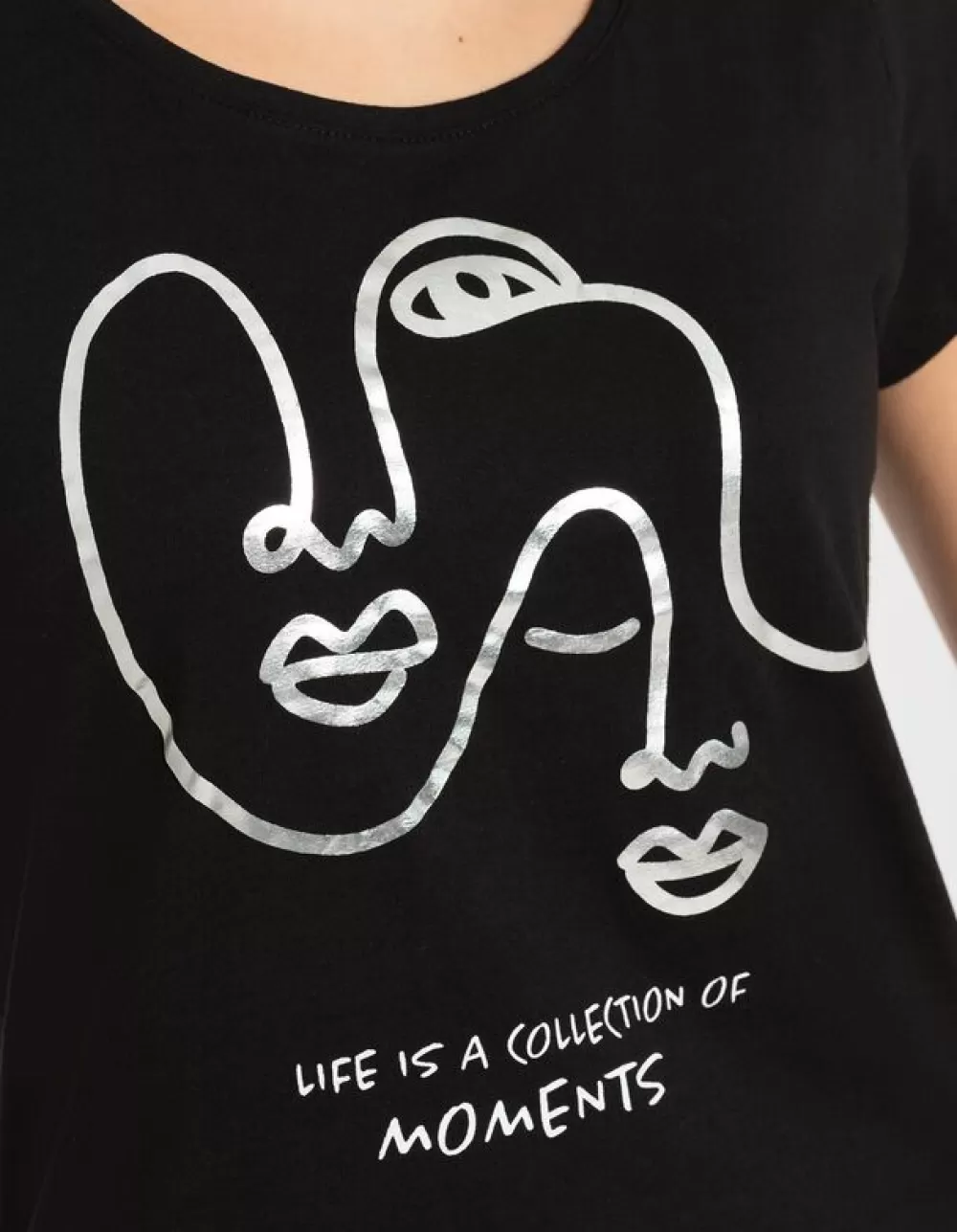 ZwartEffenRonde HalsKorte MouwenKatoenGlitterprint