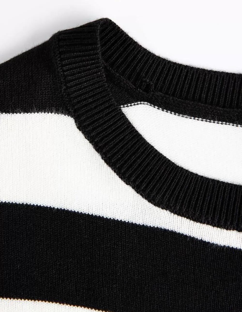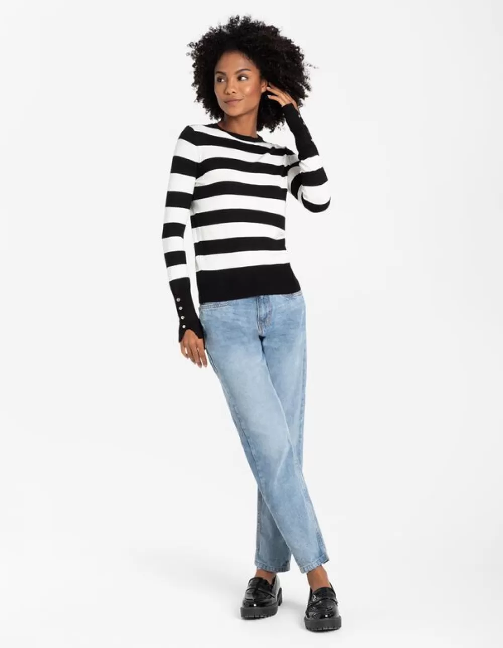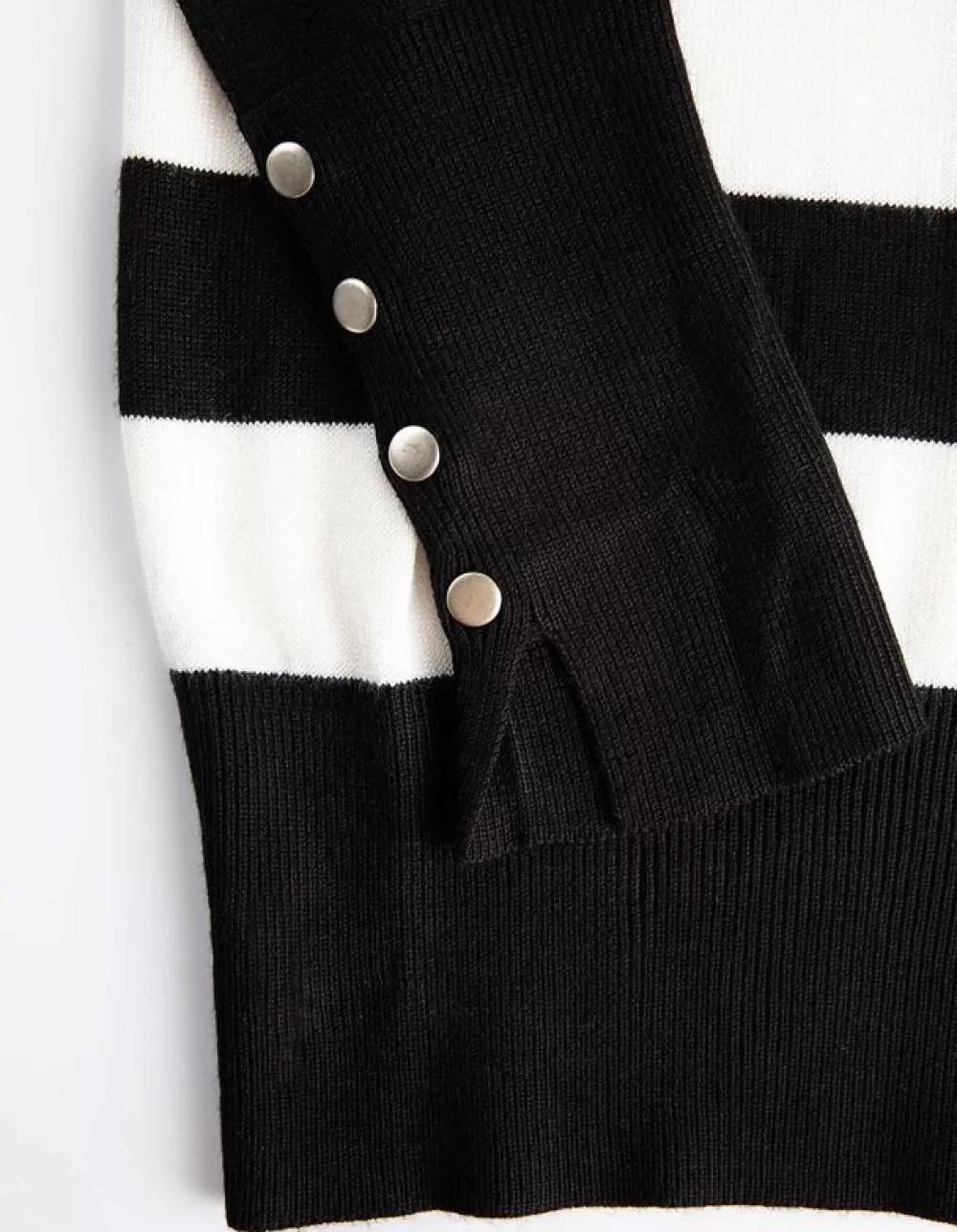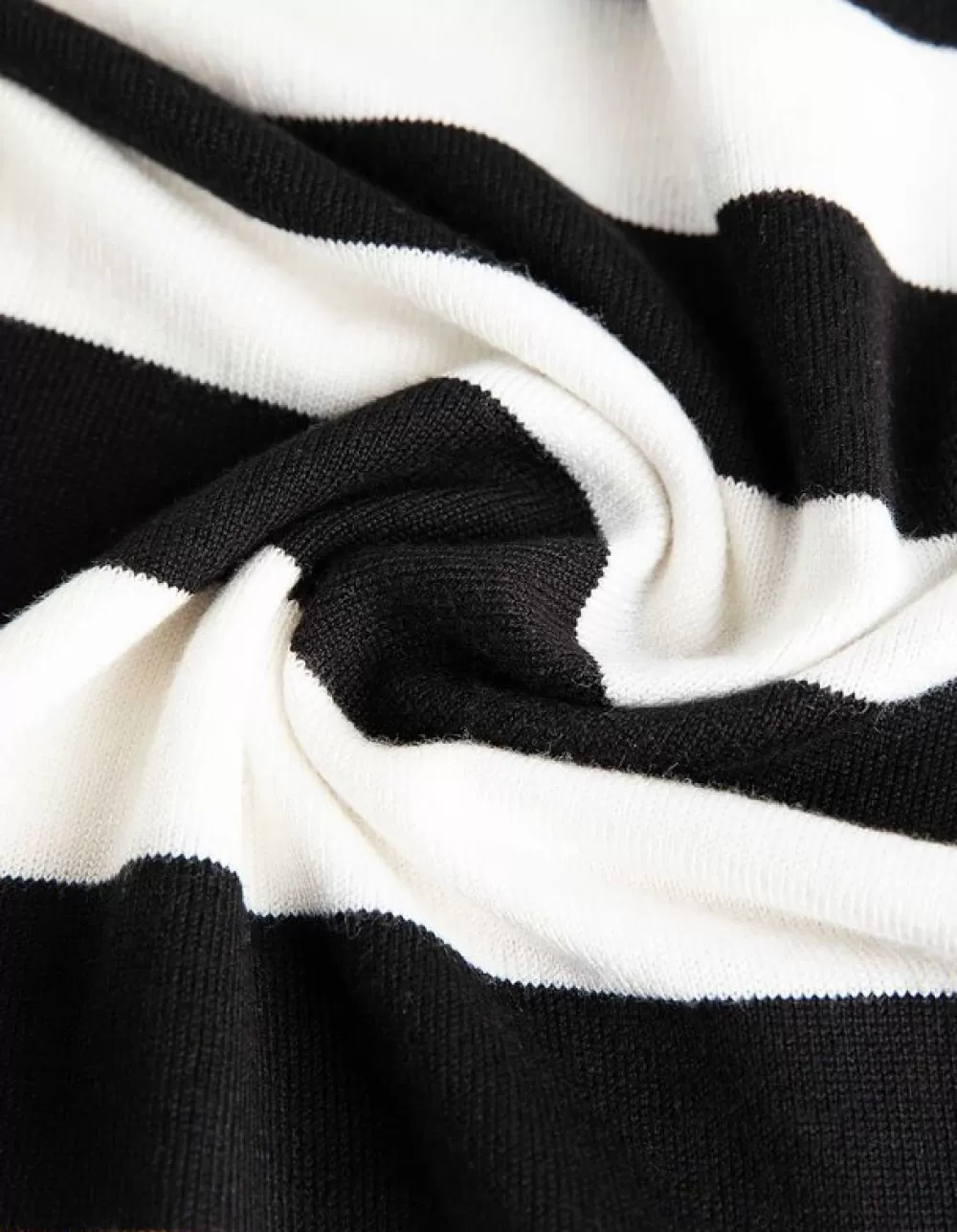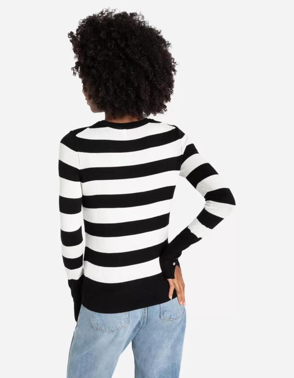 ZwartStrepenRonde HalsLange MouwenViscosemixZonder SluitingSierknopenMet Stretch