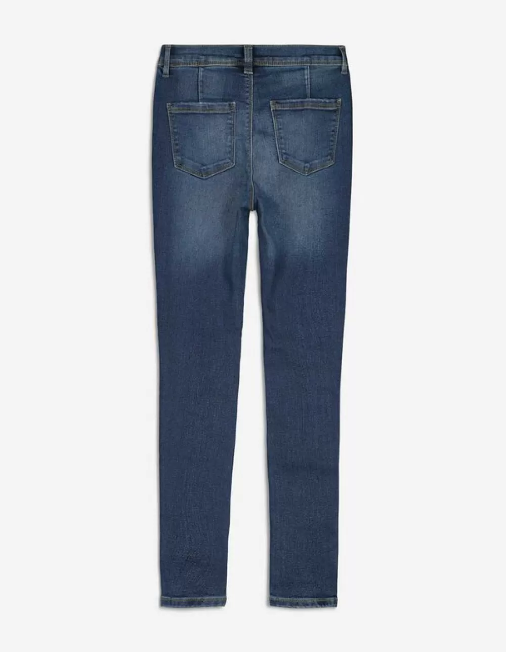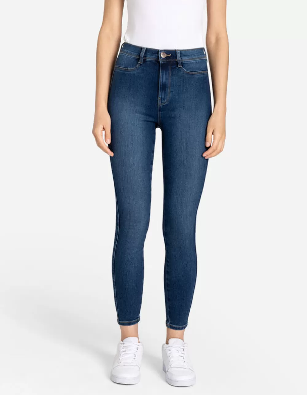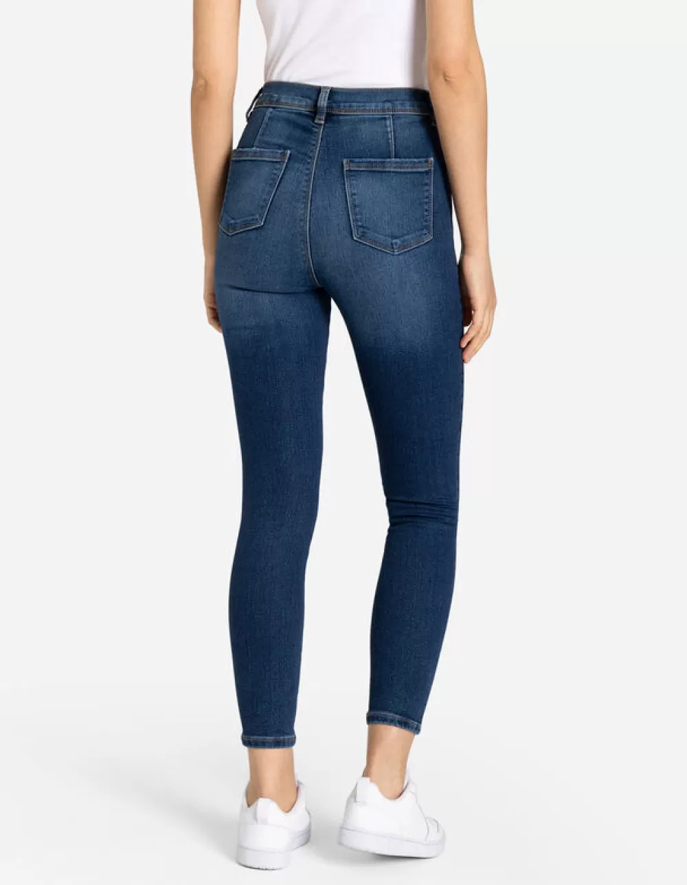 DonkerblauwMiddenblauw DenimHoge TailleWaseffectenEnkellengteDenimKnoop- En RitssluitingRiemlussenMet Stretch