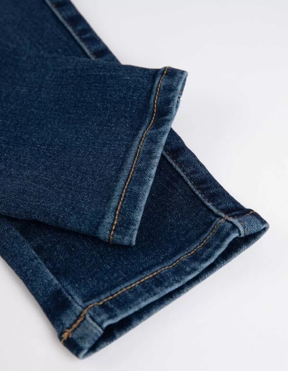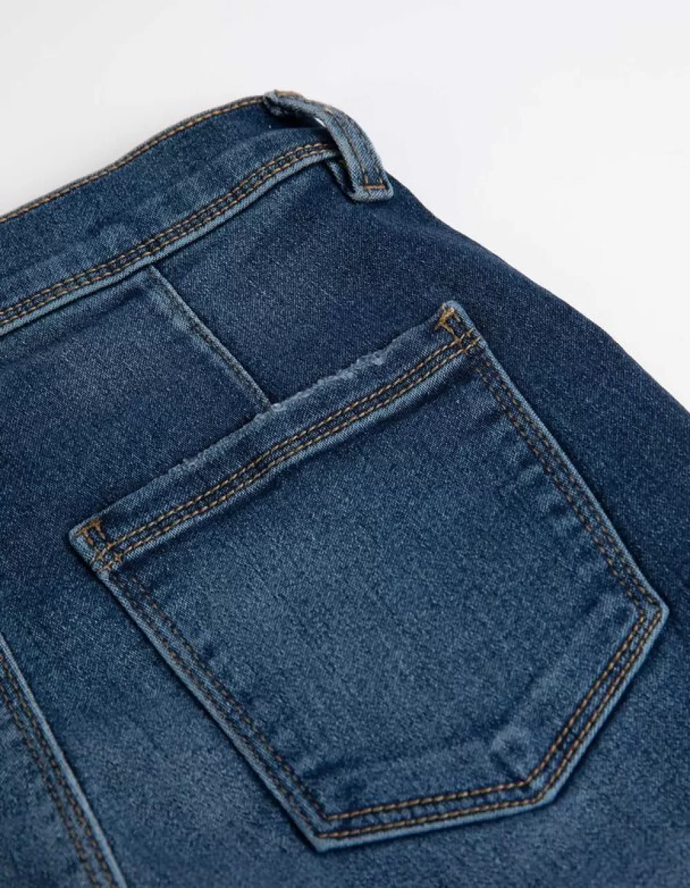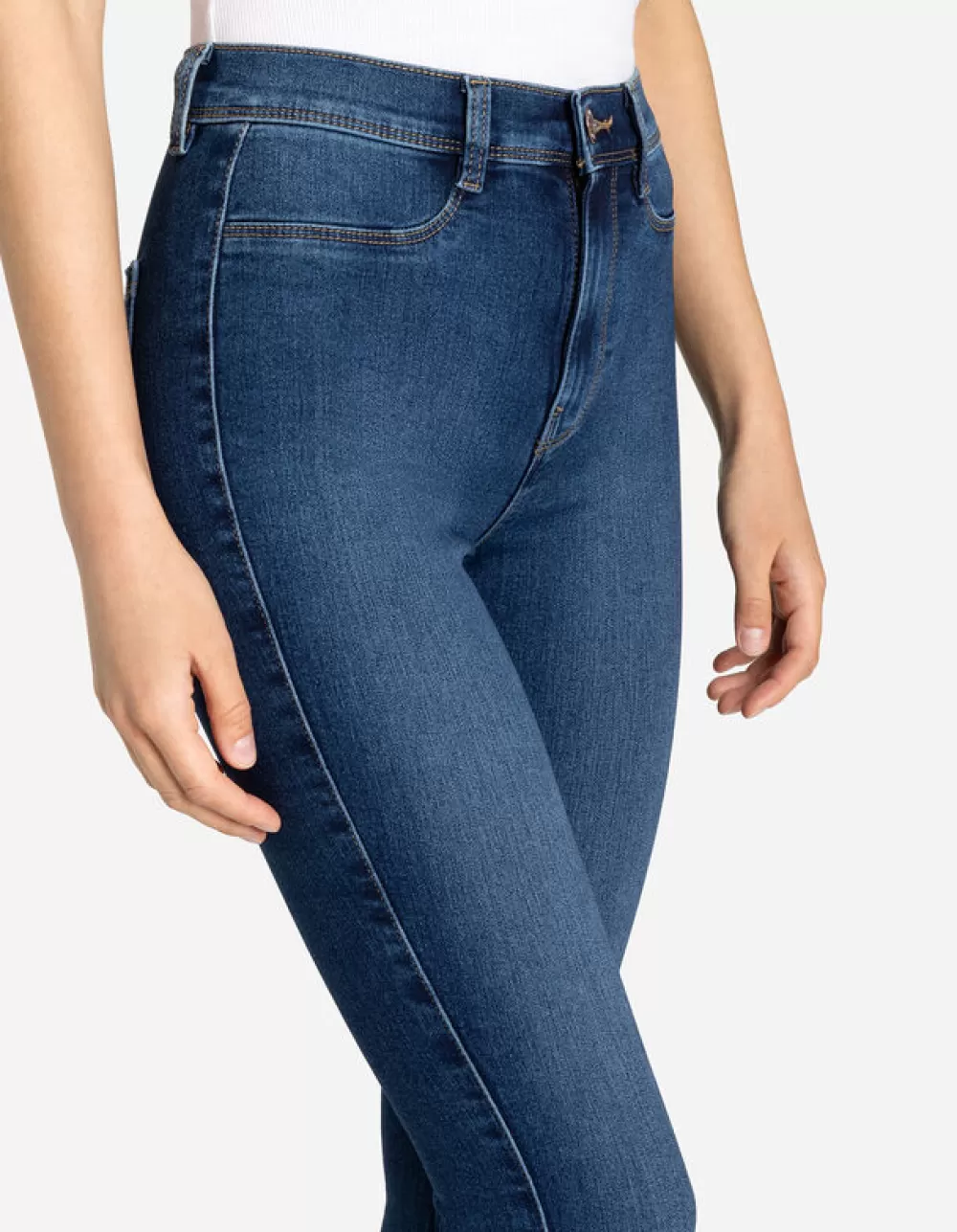 DonkerblauwMiddenblauw DenimHoge TailleWaseffectenEnkellengteDenimKnoop- En RitssluitingRiemlussenMet Stretch