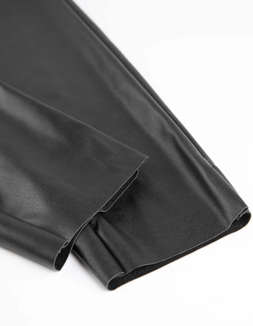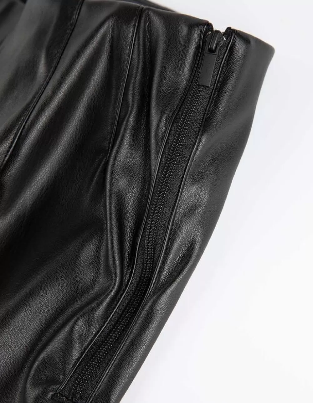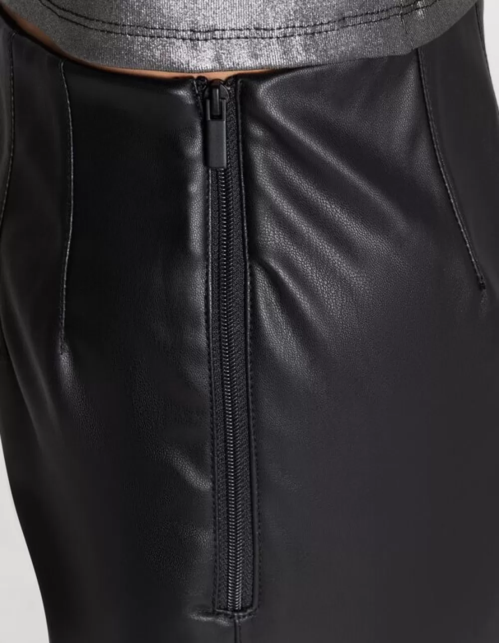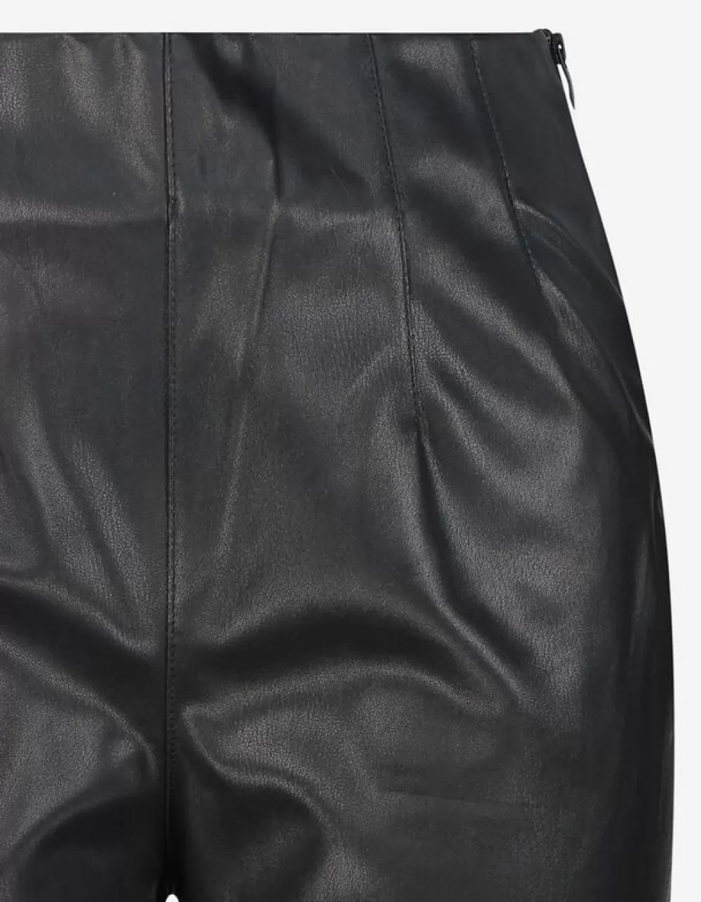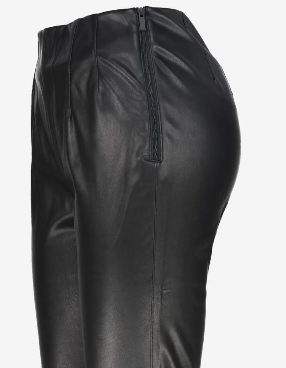 ZwartEffenHoge TailleEnkellengteImitatieleerRitssluitingOnafgewerkte RandenImitatieleer