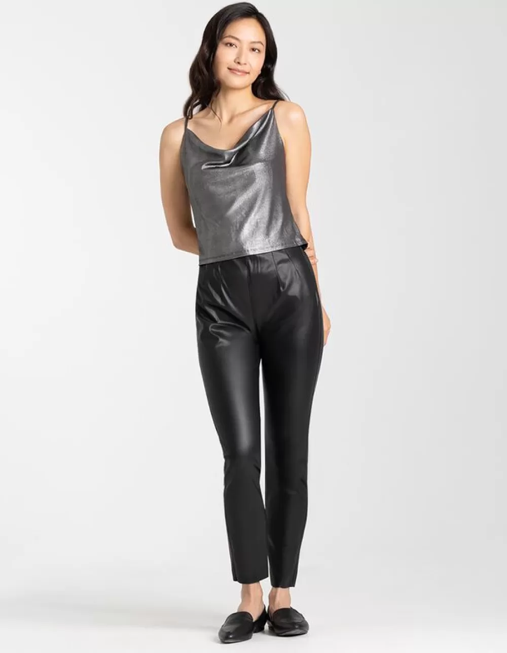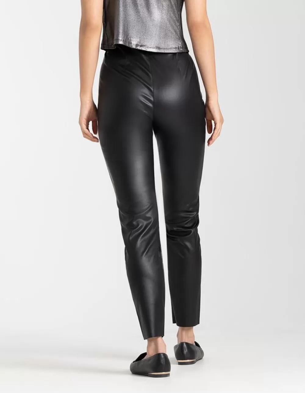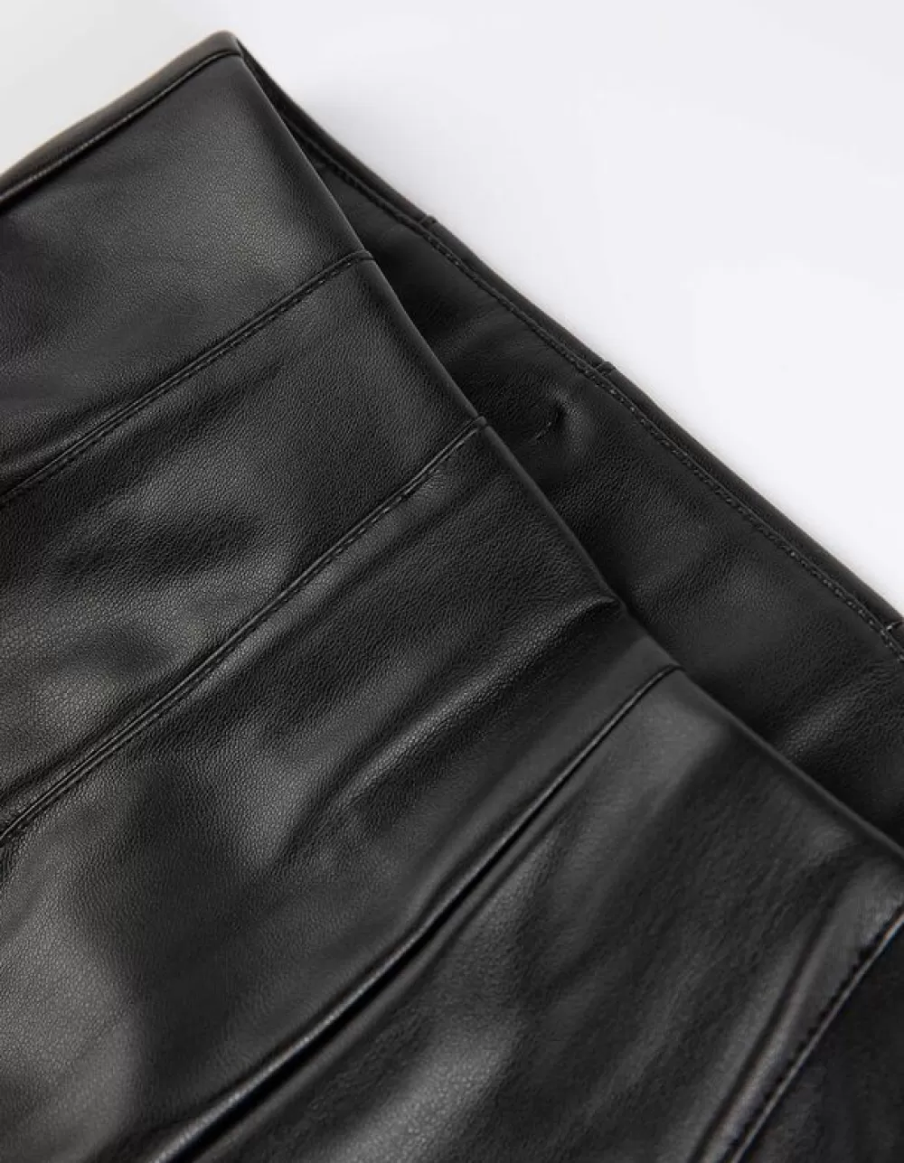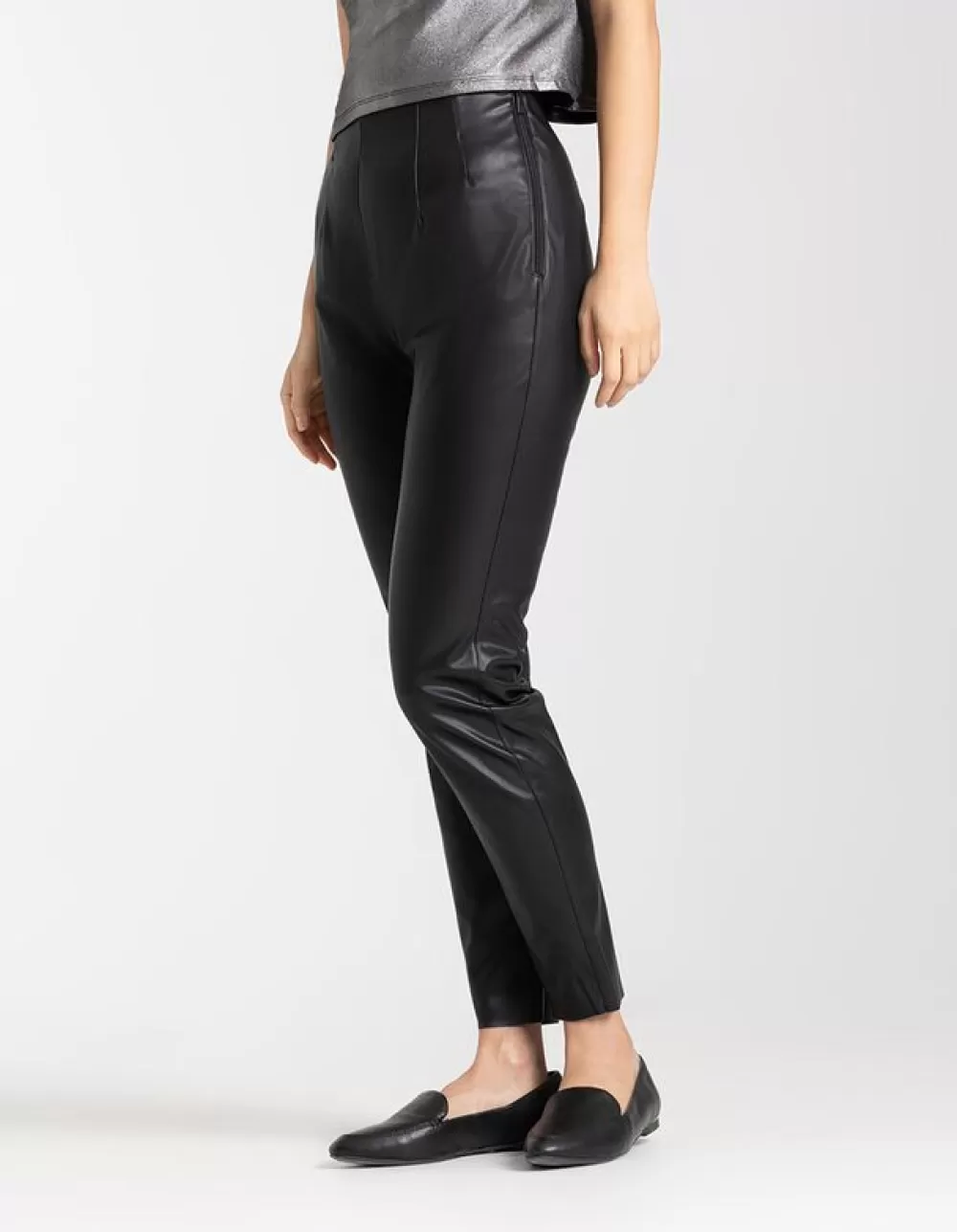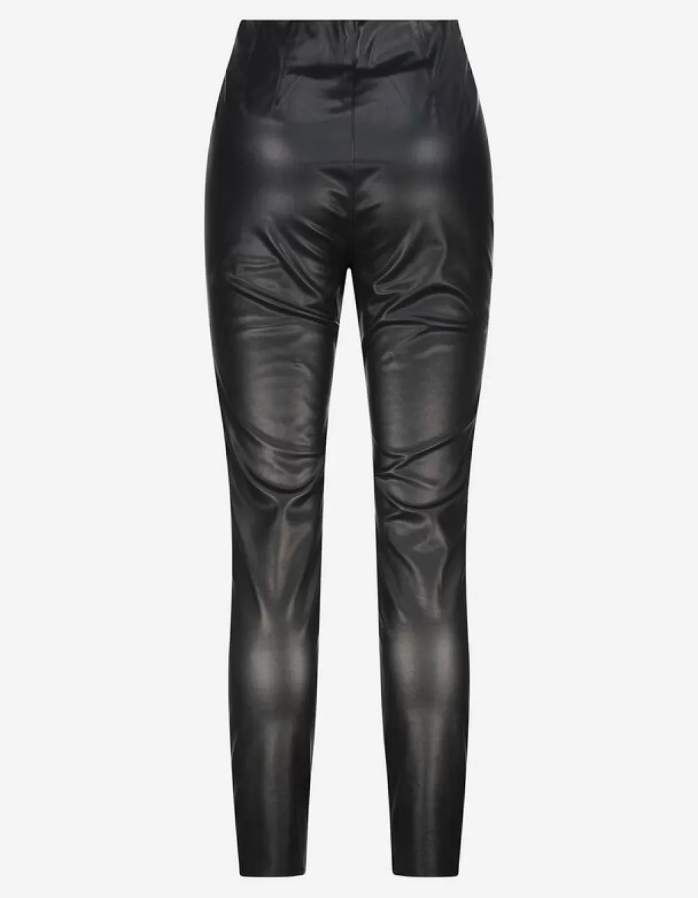 ZwartEffenHoge TailleEnkellengteImitatieleerRitssluitingOnafgewerkte RandenImitatieleer